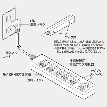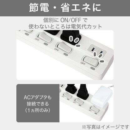 各差込口の電源をON/OFFできる、個別スイッチ付き