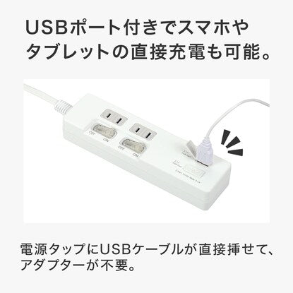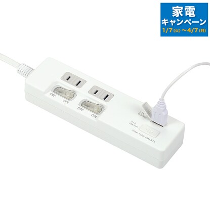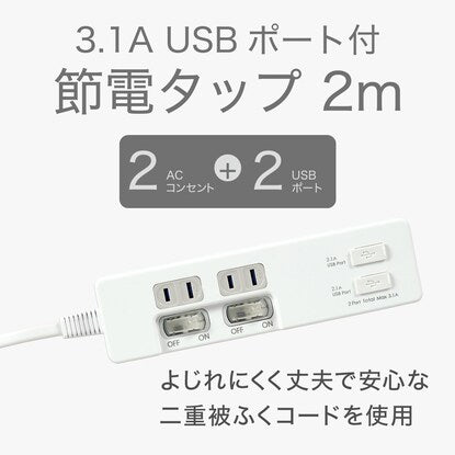 3.1A USBポート付2個口節電タップ 2m(NST_WH)