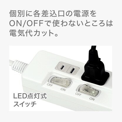 LED点灯式スイッチ付き。個別に各差込口の電源をON/OFFで使わないところは電気代カット