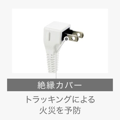 プラグはL字型でしっかりと固定。トラッキングによる火災を防ぐ絶縁カバー付き