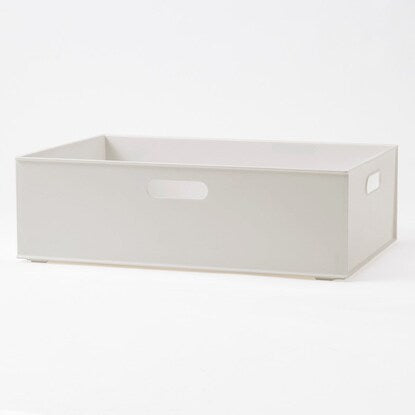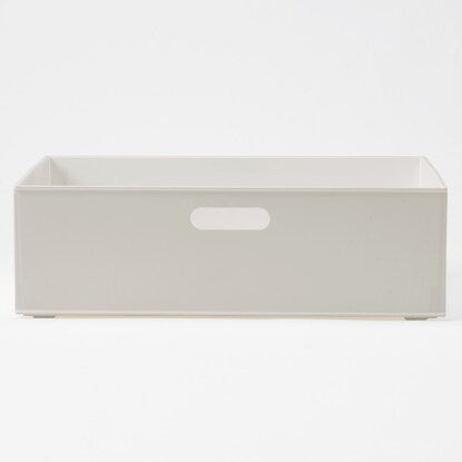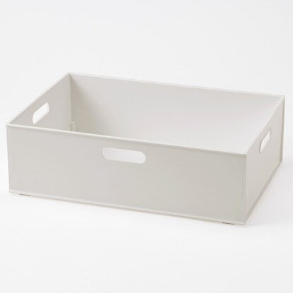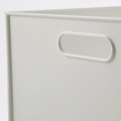 角の丸みがなくなり、正面持ち手リブがなくなったことで、住空間に溶け込む直線的なかたちとなり、サイズ違いで組み合わせても、ピタッとそろいます。