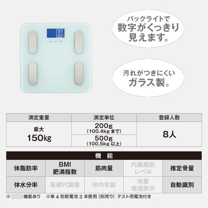 ※測定できる年齢は、10~85歳です。対象年齢以外の方は、体組成項目をすべて測定できません。