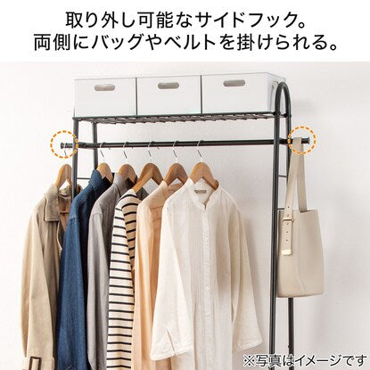 サイドフックは取り外し可 プラスドライバー必要 組立目安(2人以上):約30分77.2×45×164cmスチール【重量】 4.9kg【耐荷重(約)】 全体:24kg 棚1枚あたり:5kg ポール:10kg サイドフック1個あたり:2kg【お手入れ/点検】 パイプに油分が付着している場合がありますので、ご使用まえに1度ふいてから使用してください。 薄めた台所用中性洗剤を浸したやわらかい布を固く絞って汚れを落とし、乾いた布で水分をよくふき取ってください。 ねじは定期的に点検し、ゆるんでいるときはしっかり締めてください。(1ヵ月に1度が目安です)【取り扱い上のご注意】 屋内(直射日光・冷暖房器具の風が直接あたらないところ)で使用して下さい。 湿気、水気の多い場所はさけ、通気性の良い場所で使用し、ぬれた衣類などを直接置いたり掛けたりしないでください。 家電製品などを収納する場合は、家電製品の取扱説明書に従い、十分なすき間をあけてください。 天板、棚板の上に直接熱いものを置かないでください。 表面を水気の多いぞうきん、クレンザー、シンナー、ベンジン、アルコール、灯油などでふかないでください。(化学ぞうきんはその注意書きに従う)