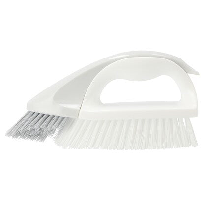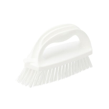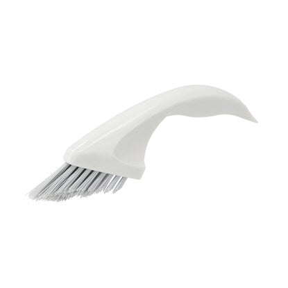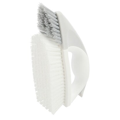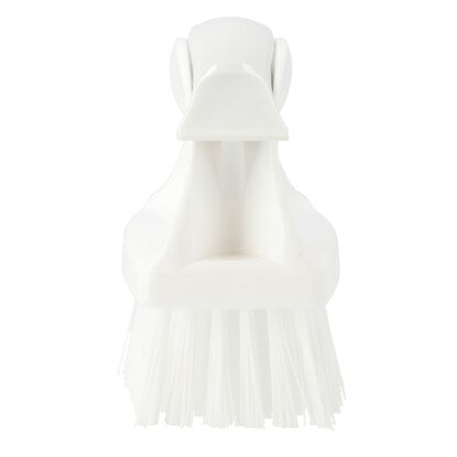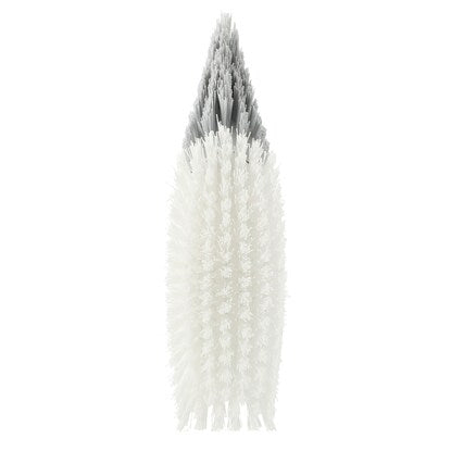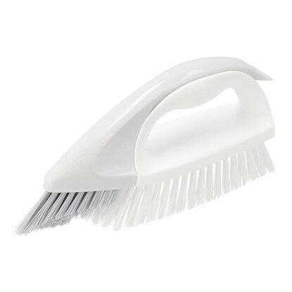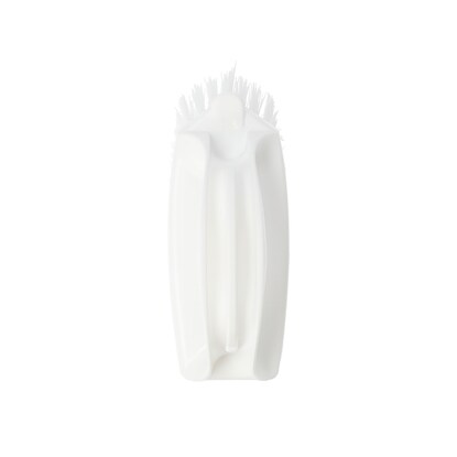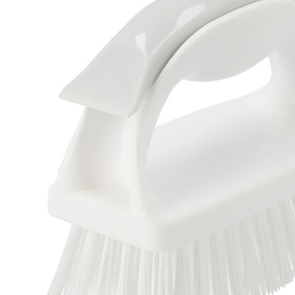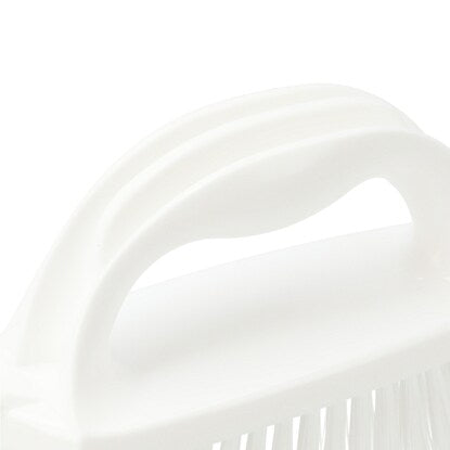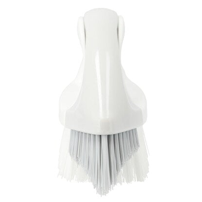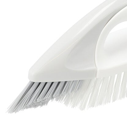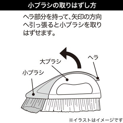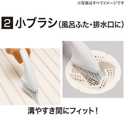 小さいブラシは毛をVカットにしていますので、風呂ふたなど溝やすき間の掃除に便利です。また、後ろにヘラが付いているのでがんこな汚れもお掃除できます。