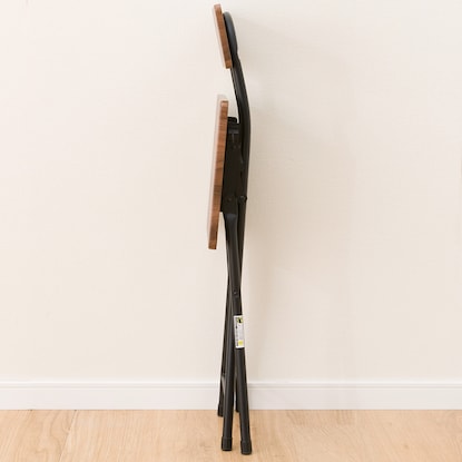 スリムに折りたためるので隙間にも収納しやすい おしゃれな木目シート Nポルダデスクや折りたたみテーブルFT1シリーズと同じ木目シートのため、合わせてお使いいただけます。 勝手に閉じないストッパー付き【座面の高さ(約)】 44cm広げた状態:幅30×奥行44×高さ75cm【表面加工】 脚部:エポキシ樹脂塗装【構造部材】 座面:繊維板(合成樹脂化粧)【お手入れについて】 汚れがひどい場合は薄めた台所用中性洗剤で汚れを落とし、乾いた布でふき取ってください。【取り扱い上のご注意】 お子さまや高齢者、介助が必要な方の単独での使用はしないでください。介助が必要なかたがご使用になる場合は、目を離さないでください。 イスに不用意に寄りかかったり、手をついたりしないでください。水平な場所で使用してください。 座った状態でイスを傾けないでください。座面以外の所に座らないでください。 可動部に手や足や指などを入れないでください。 イスの上に立ったり、のったり、飛び跳ねたり、踏み台として使用しないでください。 本品はご家庭での使用を目的としています。 ねじなどは1ヵ月に1度の目安でゆるみを締め直すなど点検してください。 通常のご使用においても、磨耗や劣化が起こります。ゆがみやガタつきなどの不具合、可動部やフレームなどの変形や破損が見られた場合は使用しないでください。 側面を正面として使用しないでください。 移動の際は、決して引きずらずに、本体をしっかりと持って移動してください。 クッションフロア、フローリング、畳の床では、傷が付く可能性があります。ご使用になる場合には、床面に傷が付かないようにカーペットなどを敷いて使用してください。 屋内で使用してください。床面がぬれているところで使用・保管しないでください。 イスの上に直接熱いものやぬれたものを置いたり、ビニールやガラスを長時間放置しないでください。 高温になるところや直射日光の当たる場所で使用・保管しないでください。 火気やストーブなどの近くで使用・保管しないでください。