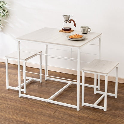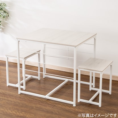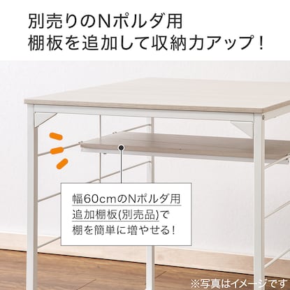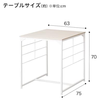 テーブル+イス2脚の3点セット Nポルダ用追加棚板(幅60cm用)を追加して収納力アップ Nポルダ用追加パーツで小物をすっきり収納できる ※追加棚板・パーツは別売りです。 ※Nポルダ用追加棚板は『幅60cm用』のみ取付け可能です。 他サイズ(幅40cm用・幅80cm用)は対応しませんのでご注意ください。 組立目安(2人以上):約45分テーブル:幅63×奥行75×高さ70cm イス(1脚あたり):幅39.8×奥行28.2×高さ42cm天板:パーティクルボード パイプ:スチール