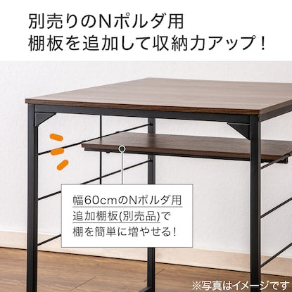 テーブル+イス2脚の3点セット Nポルダ用追加棚板(幅60cm用)を追加して収納力アップ Nポルダ用追加パーツで小物をすっきり収納できる ※追加棚板・パーツは別売りです。 ※Nポルダ用追加棚板は『幅60cm用』のみ取付け可能です。 他サイズ(幅40cm用・幅80cm用)は対応しませんのでご注意ください。 組立目安(2人以上):約45分テーブル:幅63×奥行75×高さ70cm イス(1脚あたり):幅39.8×奥行28.2×高さ42cm天板:パーティクルボード パイプ:スチール