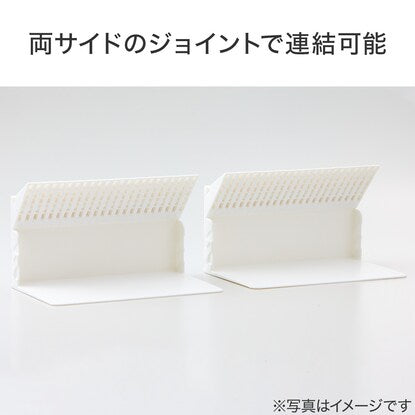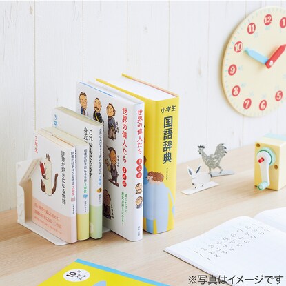 本を手前から差し込むだけでストッパーが上がり差し込んだものを保持するので倒れない