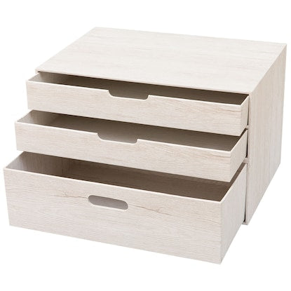 木目調 引き出しボックス レギュラー 3段(ホワイトウォッシュ IW01)