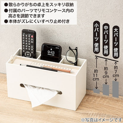 散らかりがちの卓上をスッキリ収納 付属のパーツでリモコンケース内の高さを調節できます 本体がズレにくいすべり止め付き幅26×奥行12×高さ15cm【ケース内の高さ】 大パーツ使用時:約7cm 中パーツ使用時:約9cm 小パーツ使用時:約11cm本体:ペーパー 芯材:ペーパー【取り扱い上のご注意】 直射日光のあたる場所、高温多湿な場所でのご使用はお止めください。 火に近づけたり、水をかけたりしないでください。変色・変形、カビの原因になります。 水洗いはしないでください。商品の汚れは水で薄めた中性洗剤をやわらかい布に含ませ固く絞ってふき取り、風通しの良い場所で陰干ししてください。 漂白剤やシンナー、ベンジンなどの薬品は使用しないでください。変色や色落ちの原因になります。