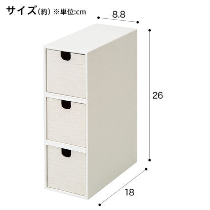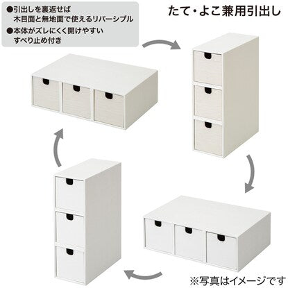 引出しを裏返せば木目面と無地面で使えるリバーシブル 本体がズレにくく開けやすいすべり止め付き8.8×18×26cm本体:ペーパー 芯材:ペーパー【お手入れ方法】 水洗いはしないでください。商品の汚れは水で薄めた中性洗剤をやわらかい布に含ませ固く絞ってふき取り、風通しの良い場所で陰干ししてください。 漂白剤やシンナー、ベンジンなどの薬品は使用しないでください。変色や色落ちの原因になります。【取り扱い上のご注意】 直射日光のあたる場所、高温多湿な場所でのご使用はお止めください。 火に近づけたり、水をかけたりしないでください。変色・変形、カビの原因になります。 火気の近くでのご使用はお止めください。 熱いものやぬれたもの、水分のあるものなどは入れないでください。 においが気になる場合は、風通しの良い場所で陰干ししてください。 壁紙や床の材質によってはワックス・湿気などの影響で接触箇所に色移りしやすいため、直置きはさけてご使用ください。 ※材質の特性所、摩擦などで色が落ちる場合がございます。