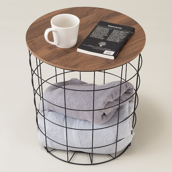 中にものを入れることができサイドテーブルにもなるバスケットです。飲み物や読みかけの本を置くなど、さまざまなシーンで大活躍します。
