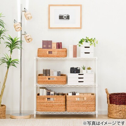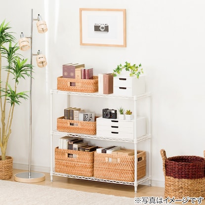 全体耐荷重約100kg、棚板1枚あたりの耐荷重は約30kgです。
