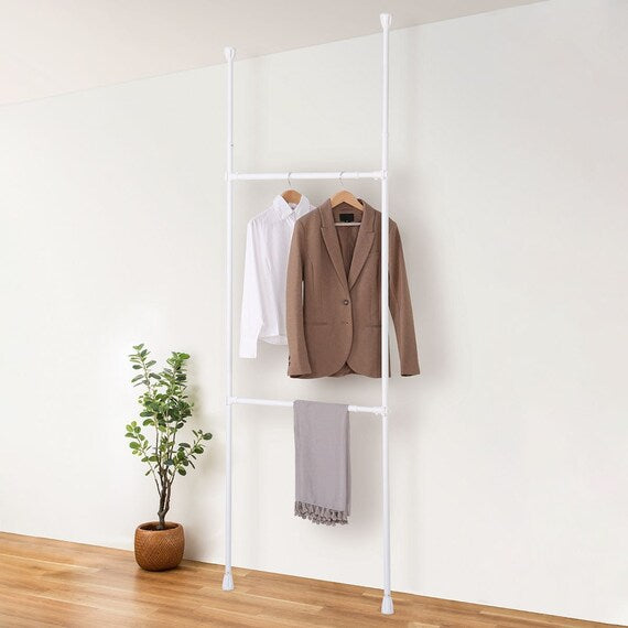 つっぱり棒でどこでも設置できる便利なポールハンガーです。リュックやバッグ類をかけられるほど、耐久名もバッチリです。ハンガー位置も簡単に変更することができます。