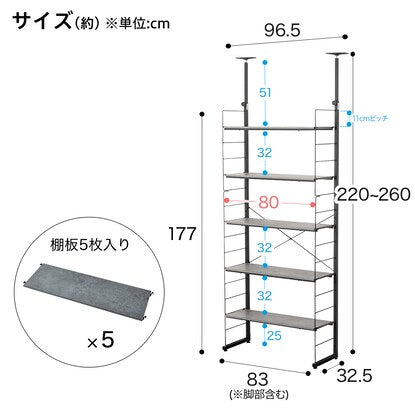 突っ張り壁面収納Nポルダ(幅80cm 石目調グレー)