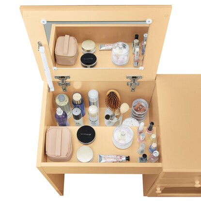 天板を開ければドレッサー、閉じればデスクになる2WAY機能の便利なドレッサーデスク。