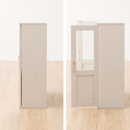 ※実際のサイズ・色・構造 等を保証するものではありません ARについての詳細はこちら ※画像はミドルブラウンを使用しています。 奥行き29cmのスリムさで、場所をとらずに配置ができます。単身の方や1人暮らしの学生さんのお部屋にぴったりサイズ。お部屋になじみやすい木目調のキャビネットです。扉はガラスと板の組み合わせたスッキリとしたデザイン。見せたくないものは板の部分で目隠しできます。中に入れるものの高さに合わせて、棚板の位置を調整できます。(固定棚×1枚、可動棚×2枚)別売りの専用キャビネット(小)を連結できます。 ■別売り商品→キャビネット大と小のセットはこちら→キャビネット小 単品はこちら