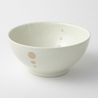 シンプル、控えめなドットがおしゃれなどんぶりです【満水容量(約)】 1200mL・ガス火、オーブン使用不可 ・電子レンジ、食洗機対応※焼き物の為、多少サイズにブレが生じることがございます。