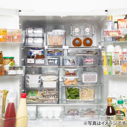 見やすく仕分けてすっきり整理できる。700mLまでのペットボトルが収納できる。2段まで積み重ねできる。