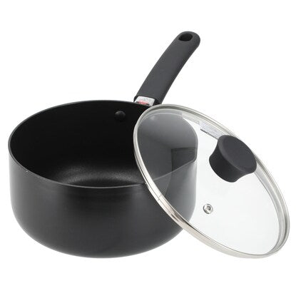 握りやすく、すべりにくい 持ちやすさと滑りにくさを兼ね備えた、ソフトタッチハンドル 内面はこびりつくにくいふっ素加工【品質表示(なべ)】 材料の種類 本体:アルミニウム合金 はり底:ステンレス鋼(クロム16%) (底の厚さ2.5mm(はり底含む)) その他の材料 ハンドル:フェノール樹脂(耐熱温度150℃) 金具:ステンレス鋼 表面加工 内面:ふっ素樹脂塗膜加工 外面:焼付け塗装 寸法:18cm(内寸) 満水容量:2.1L【品質表示(ガラスふた)】 品名:強化ガラス製器具 強化の種類:全面物理強化 その他の材料 つまみ:フェノール樹脂(耐熱温度150℃) ふちリング、蒸気穴:ステンレス鋼※衝撃に強い強化ガラス製ですが、熱に強い耐熱ガラスではありませんので、高温のときに、水など(水やぬれたふきんなど)をかけたりして急冷させないでください。