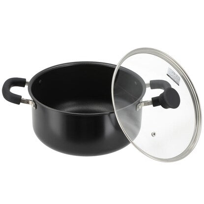 握りやすく、すべりにくい 持ちやすさと滑りにくさを兼ね備えた、ソフトタッチハンドル 内面はこびりつくにくいふっ素加工【品質表示(なべ)】 材料の種類 本体:アルミニウム合金 はり底:ステンレス鋼(クロム16%) (底の厚さ2.5mm(はり底含む)) その他の材料 ハンドル:シリコーンゴム(耐熱温度200℃) 金具:ステンレス鋼 表面加工 内面:ふっ素樹脂塗膜加工 外面:焼付け塗装 寸法:24cm(内寸) 満水容量:5.2L【品質表示(ガラスふた)】 品名:強化ガラス製器具 強化の種類:全面物理強化 その他の材料 つまみ:フェノール樹脂(耐熱温度150℃) ふちリング、蒸気穴:ステンレス鋼※衝撃に強い強化ガラス製ですが、熱に強い耐熱ガラスではありませんので、高温のときに、水など(水やぬれたふきんなど)をかけたりして急冷させないでください。