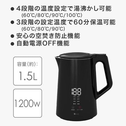 温度調整式電気ケトル(1.5L BC2S01 ブラック)