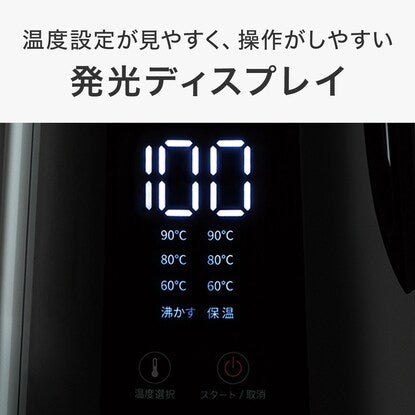 4段階の温度設定で湯沸かし可能(60℃/80℃/90℃/100℃)