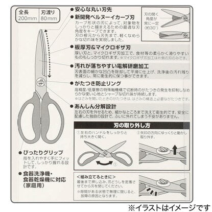 外して洗える食洗機対応キッチンバサミ(ホワイト)