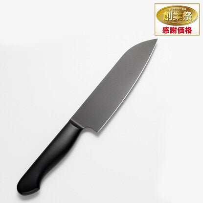 ハンドル一体で洗いやすい 持ちやすいハンドル【品質表示】 刀身:ステンレス刃物鋼(モリブデン、バナジウム含有) チタンめっきシリコーン樹脂塗装 ハンドル:ステンレス鋼 チタンめっきシリコーン樹脂塗装 刃の形状:両刃 保護キャップ:ポリプロピレン幅30×奥行4.5×高さ1.8cm【ご使用まえに】 この包丁は調理を目的としたものです。調理の目的以外には使用しないでください。 はじめてお使いになるときは、台所用中性洗剤を付けたスポンジなどで十分に洗い、すすいでください。 破損または変形などの不具合がないことをご確認ください。破損または変形した場合のご使用はお止めください。 刃先にセットされている保護キャップは、はじめてお使いになるときに取りはずして廃棄してください。【取り扱い上のご注意】 洗うときには、刃先に十分注意してください。 乳幼児の手の届かない安全な場所に保管してください。 魚の骨やカニ、かぽちゃ、冷凍商品などの硬いものを切らないでください。 金属や石などの硬いものの上では使用しないでください。 左右にこじったり、衝撃を伴う使用はさけてください。刃欠け、折れ、割れ、刃先の曲がる原因になります。 刃物ですので、取り扱いや保管には十分ご注意ください。 お子さまだけの使用はしないでください。 刀身を直接火であぶったり、近づけたりしないでください。 火のそばに置かないでください。柄が変形、変色する原因になります。 包丁の背を手で強く押さえるときは、背に布をあてるなどして調理してください。【お手入れについて】 漂白剤のご使用はお止めください。さびや変質の原因になります。 ナイロン不織布などで刃部をこすらないように注意してください。 使用後は台所用中性洗剤を付けたスポンジなどで十分に洗い、水気をよくふき取り乾燥させてください。 家庭用の食器洗い乾燥機に使用できます。 月に1~2回は研ぐようにしてください。よい切れ味が持続します。(筒易砥ぎ器が使用できます。)【さびの落としかた】 刃先がさびたときは研ぎ直してください。