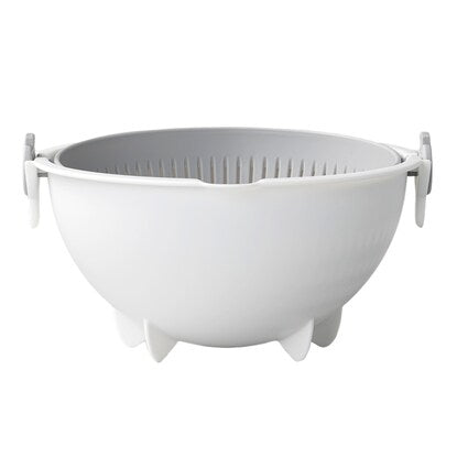 水切りラクラク回転ザル・ボウルセット(スモール グレー)