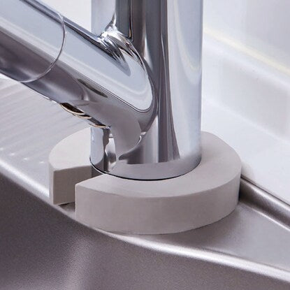 使った後、蛇口にはめておけば置き場所に困らず、蛇口まわりの吸水にもなります。
