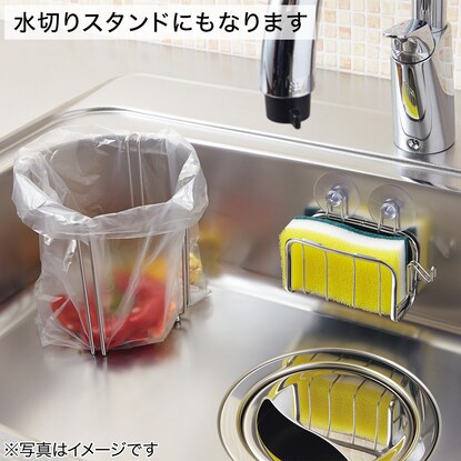 ポリ袋を掛けるだけで、カンタンにゴミ入れになります。