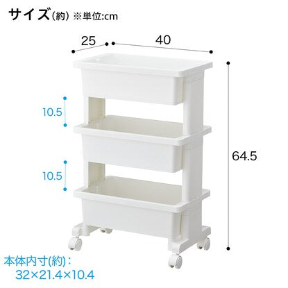 軽くて組立簡単 モバイルワゴンコンパクト(3段 ホワイト JW36)