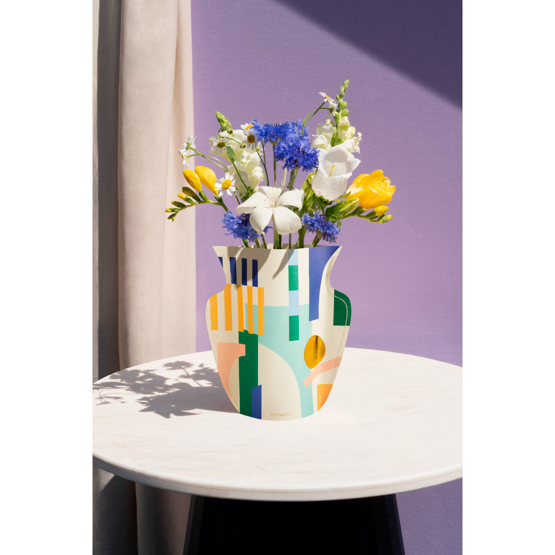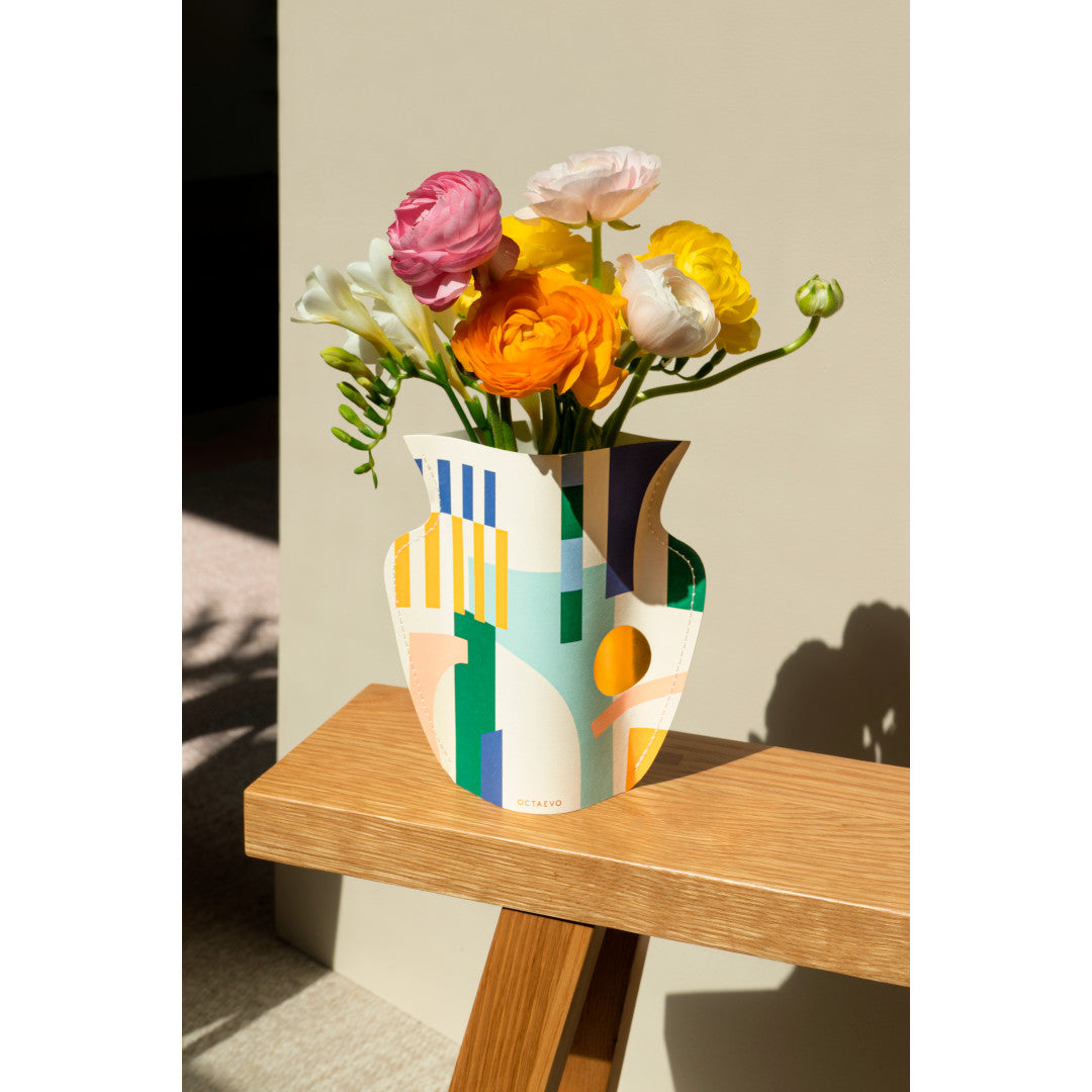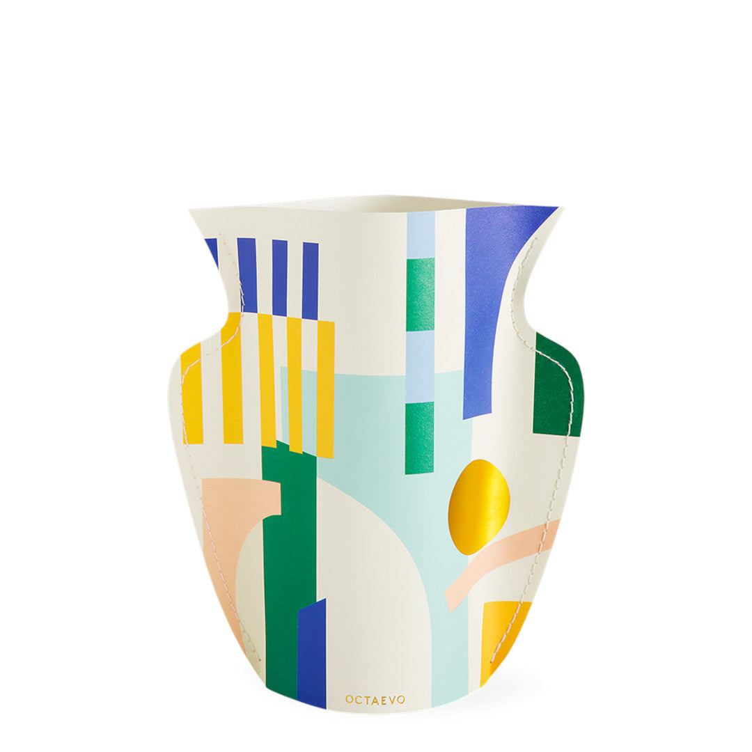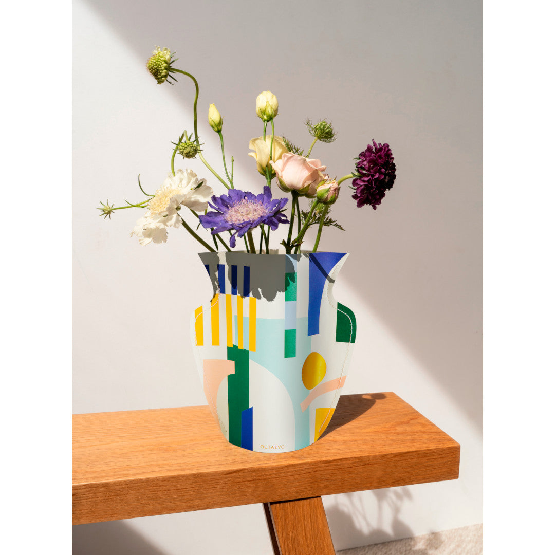 地中海をイメージしてつくられたカラフルでユニークなデザインのフラワーベース。目をを引くデザインがデスクや食卓に飾ると良く映えますよ。心のこもったオリジナルギフトとしても喜ばれることでしょう。※手作り、特殊な耐水紙を使用