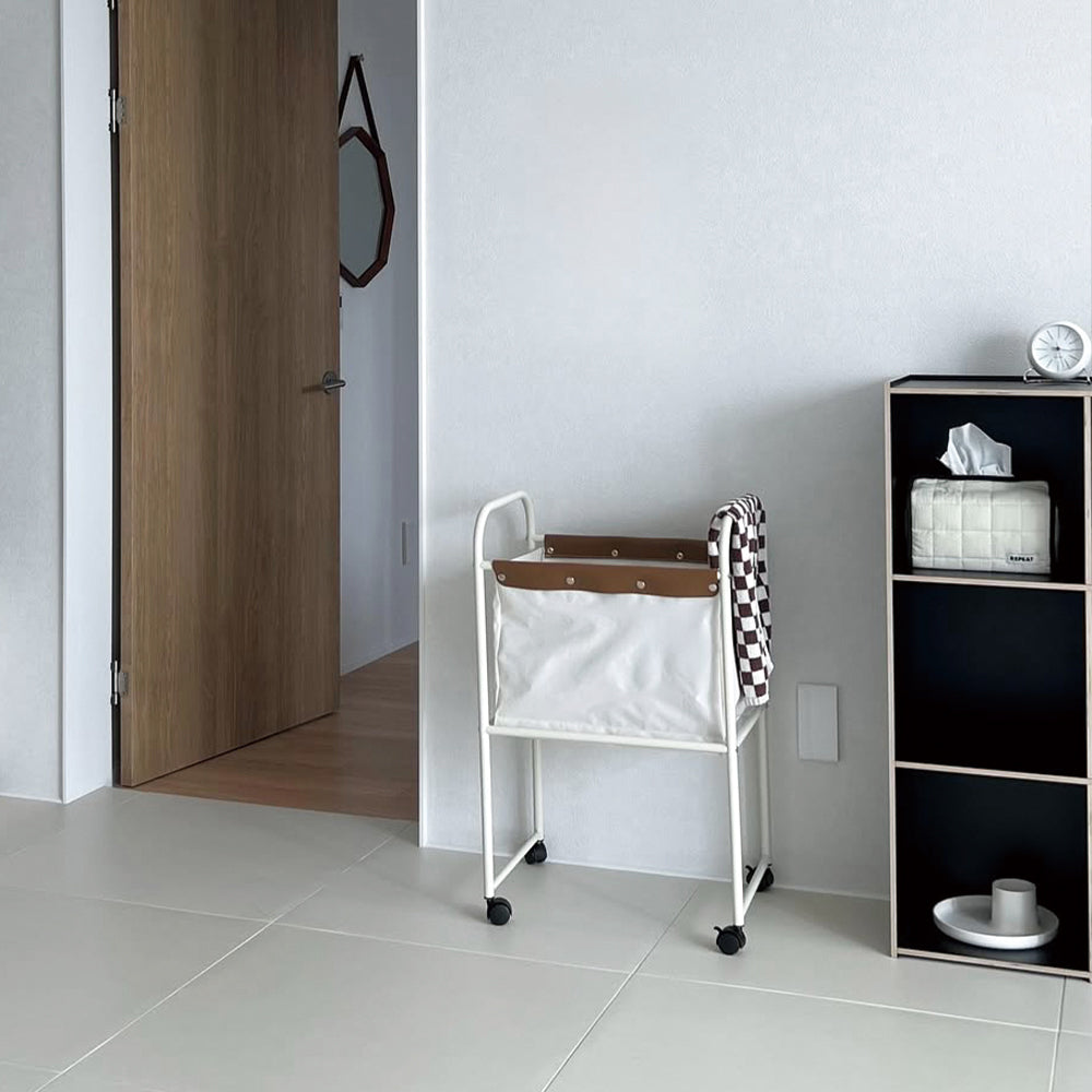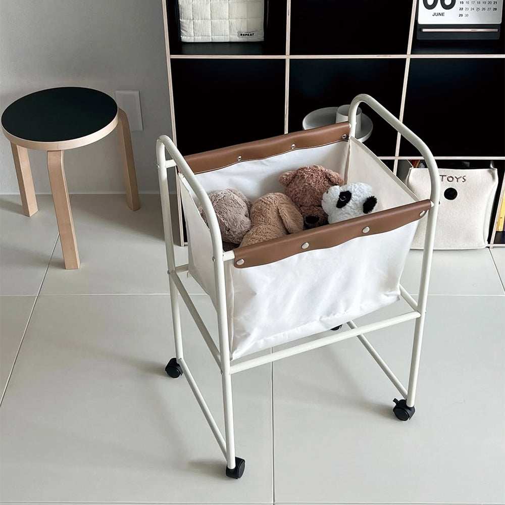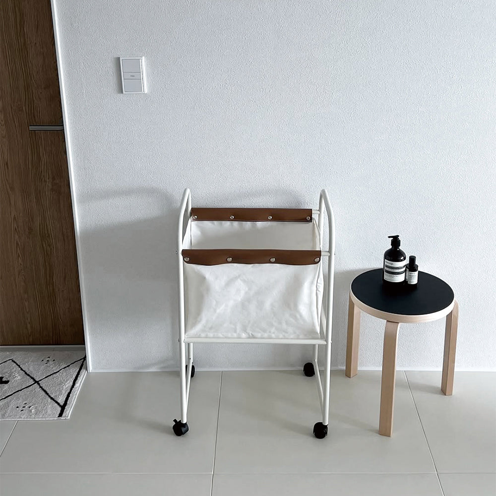 様々なアイテムの収納が可能な、ナチュラルな色味のベージュデーファブリックトロリー 軽やかな移動だけでなく広々とした収納が可能なベージュデーファブリックトロリーは温かみのある色味でどの空間にも自然に溶け込みます。