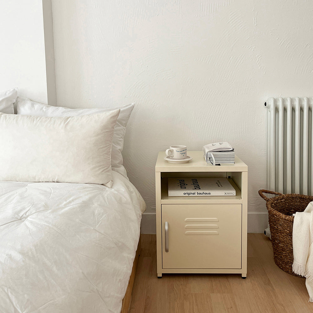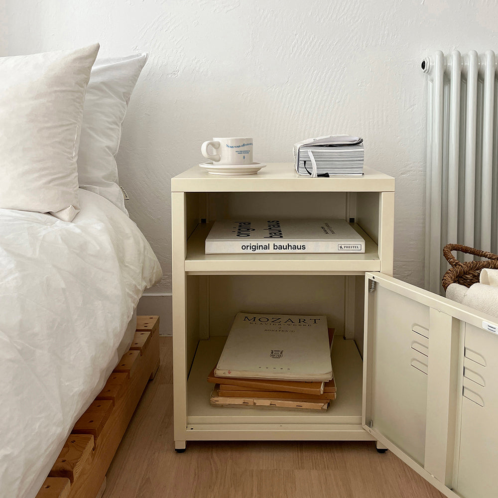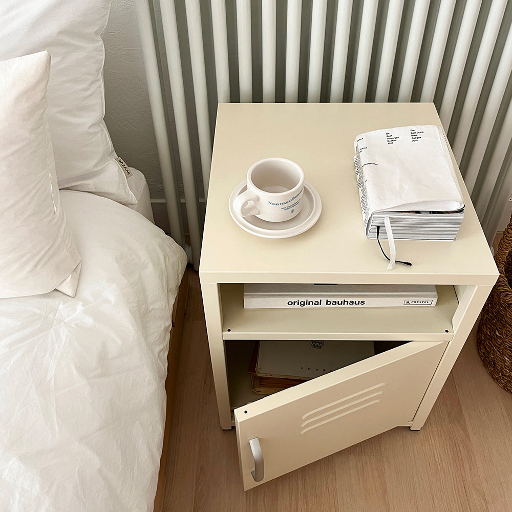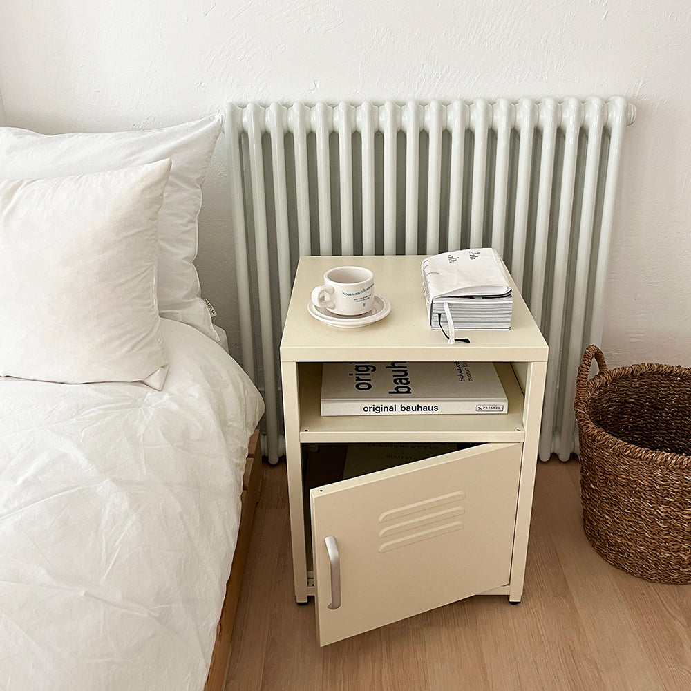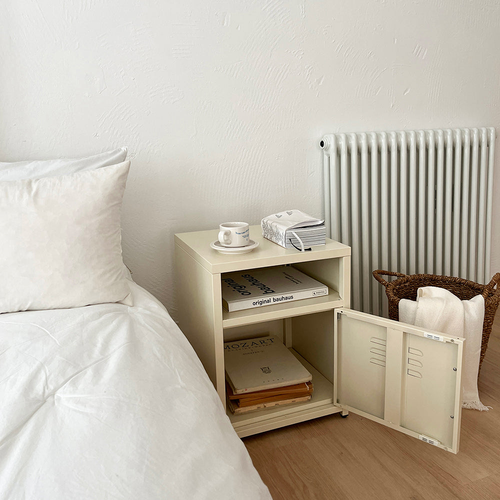 O'gre バターキャビネットサイドテーブルは、優しいバター色が魅力の収納付きサイドキャビネットです。