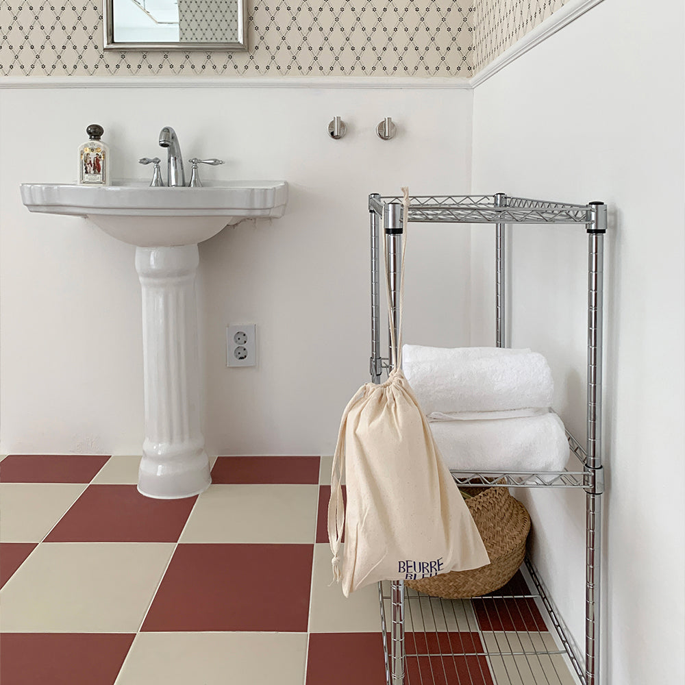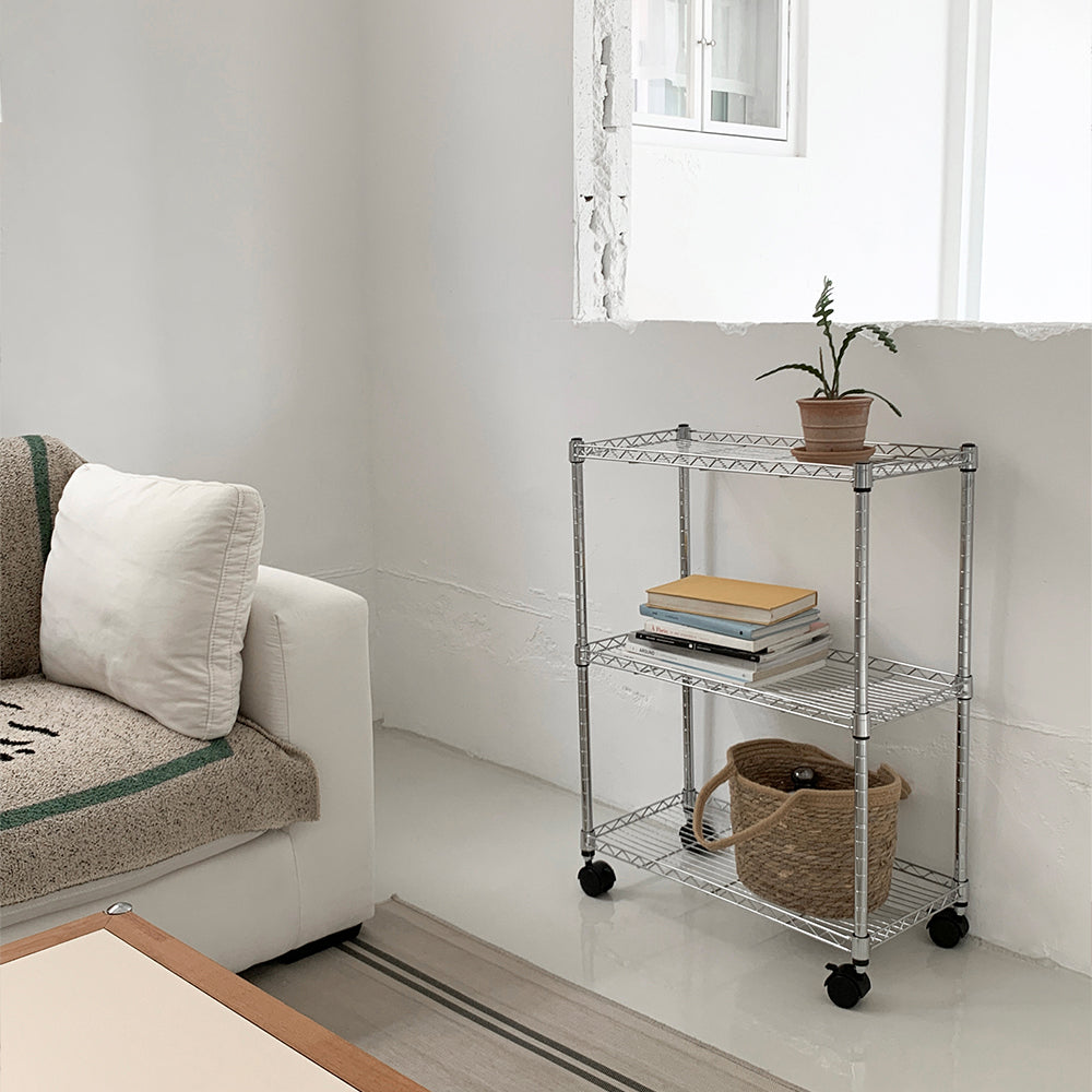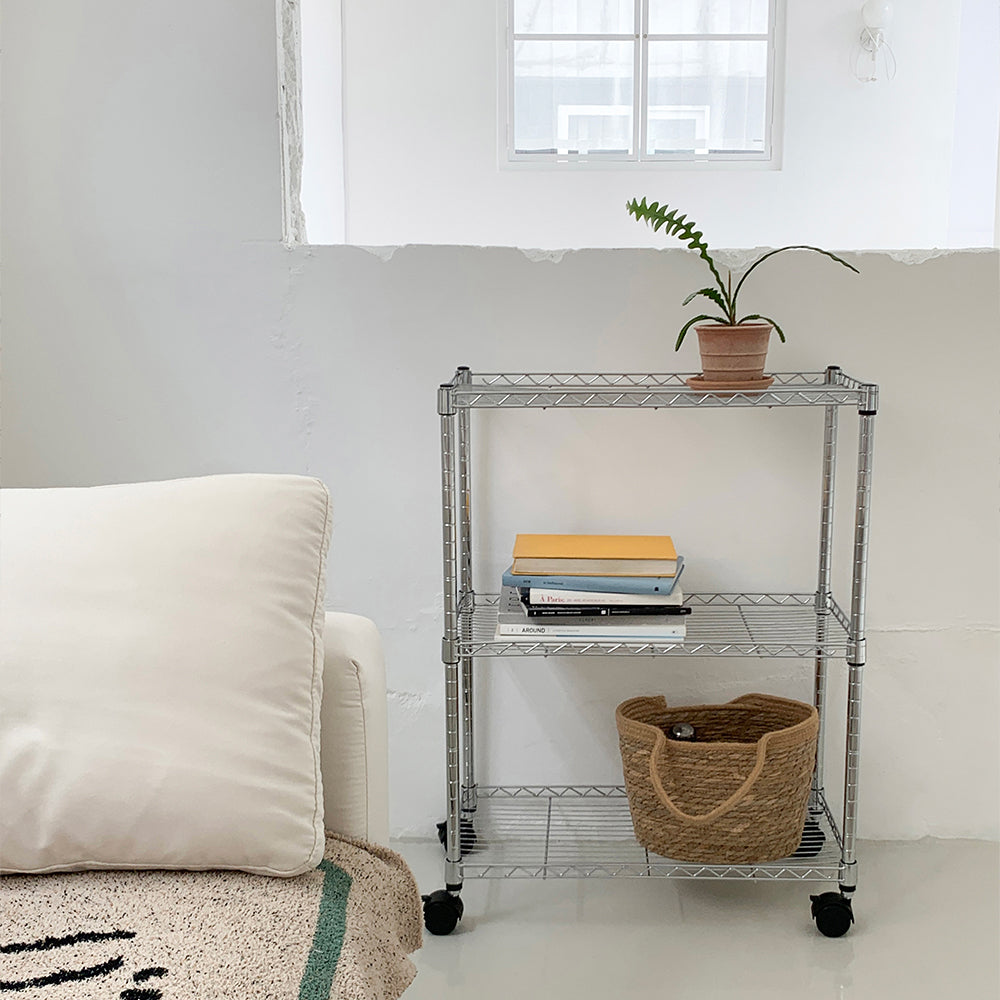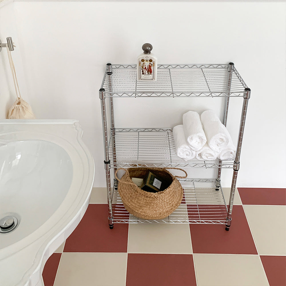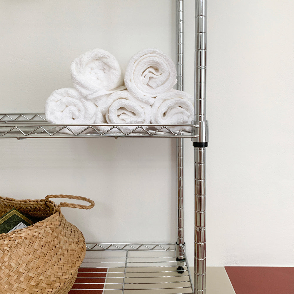 洗面所や一人暮らしのキッチンで活躍。Ogreのパントリー棚Mは、タオルや日用品をすっきり整理できるコンパクト収納ラックです。
