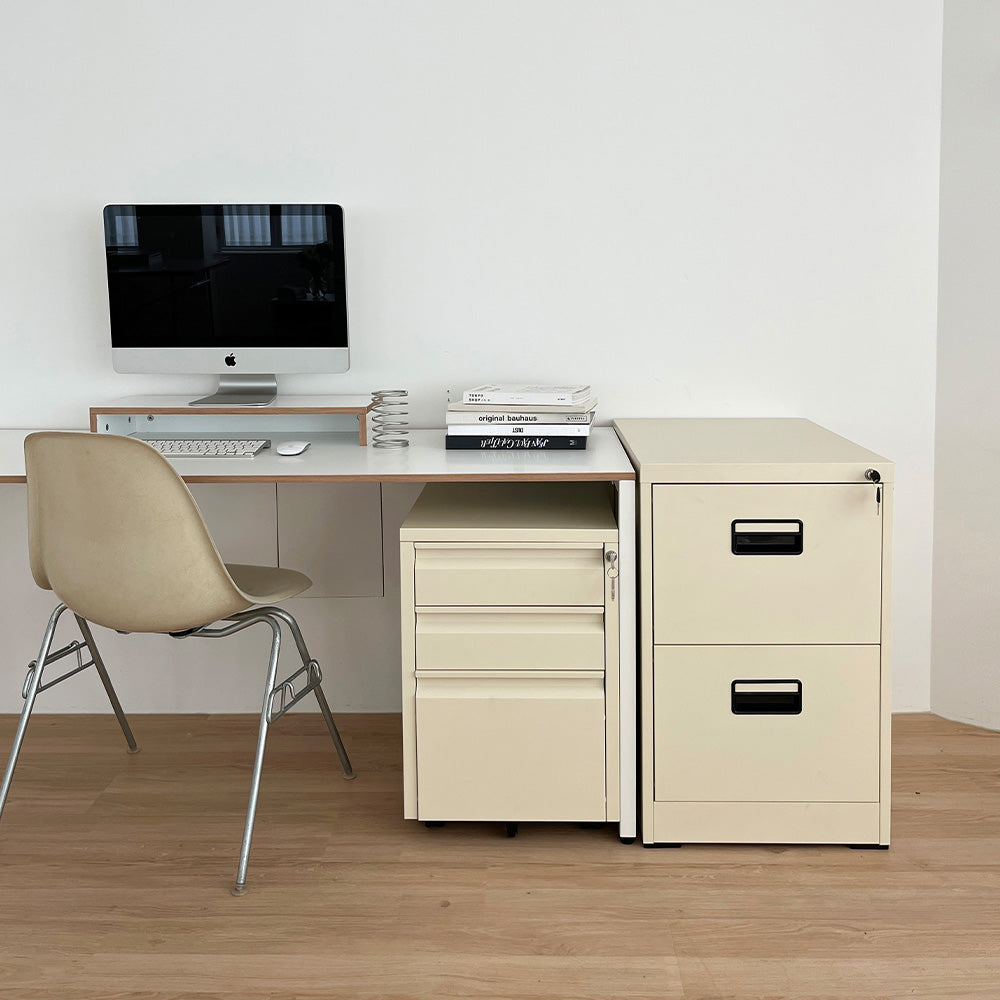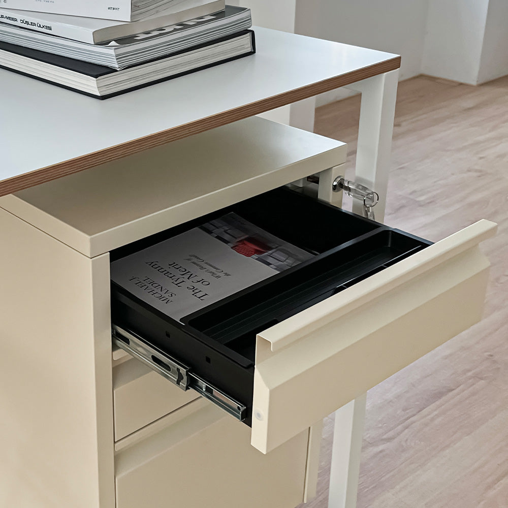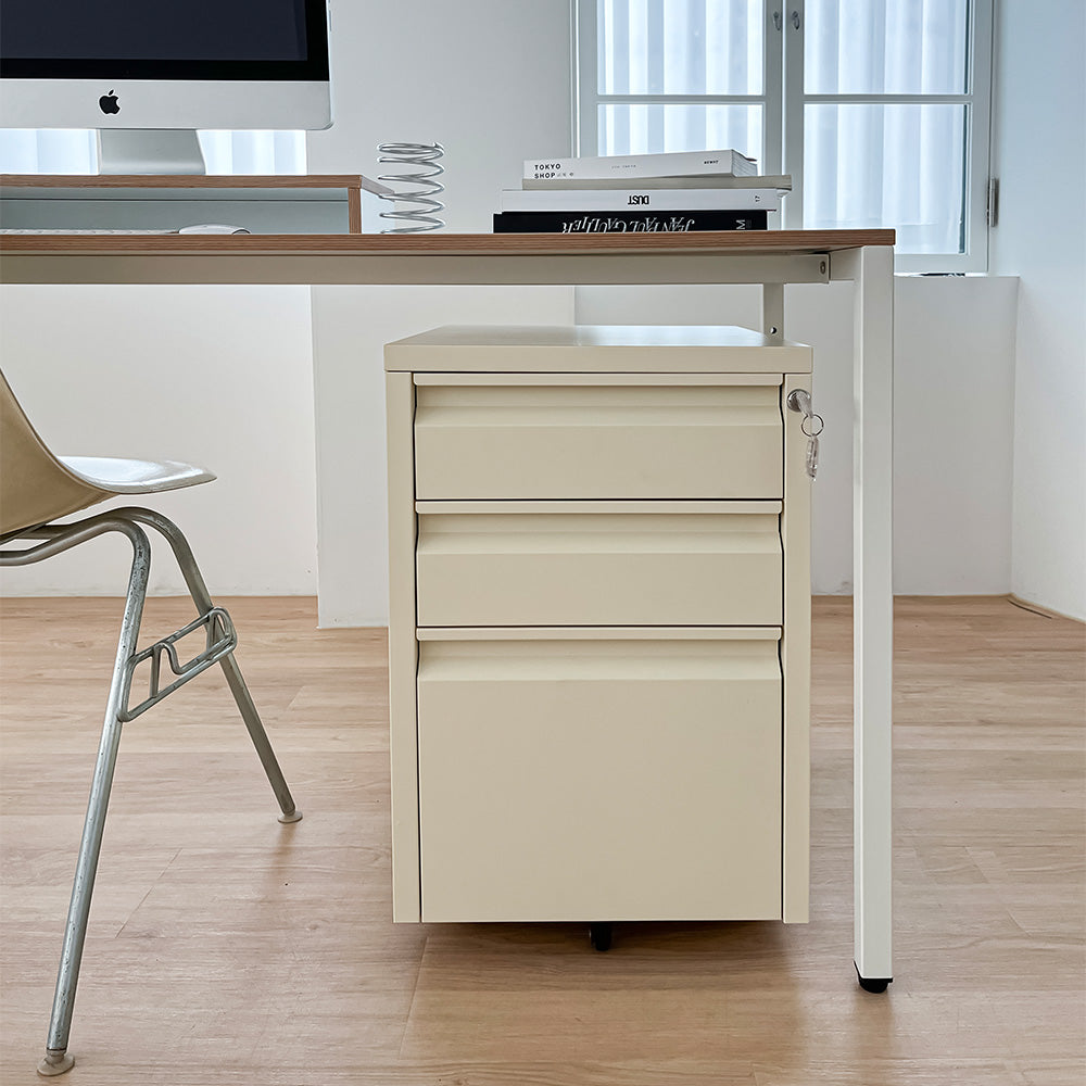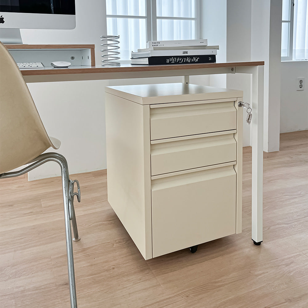 やさしいバターカラーが魅力のバター3段移動式キャビネット。ホームオフィス収納や書類整理キャビネットとして活躍し、在宅ワーク空間にすっきりとした印象を与えます。