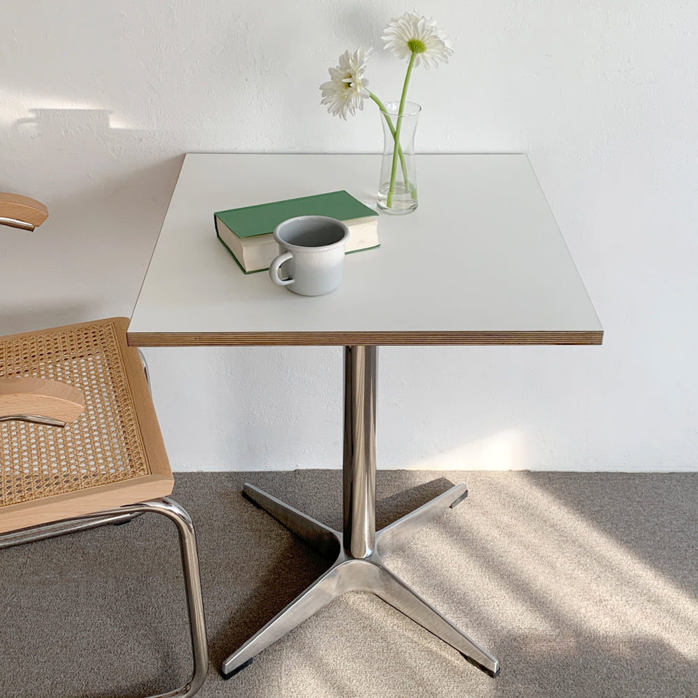 シラカバの木のディテールが活かされた、シラカバHPLホマイカ四角テーブル 自然そのままのシラカバの木のディテールが生きた 暖かいウッドインテリアの感性が引き立つ快適な四角テーブルです。