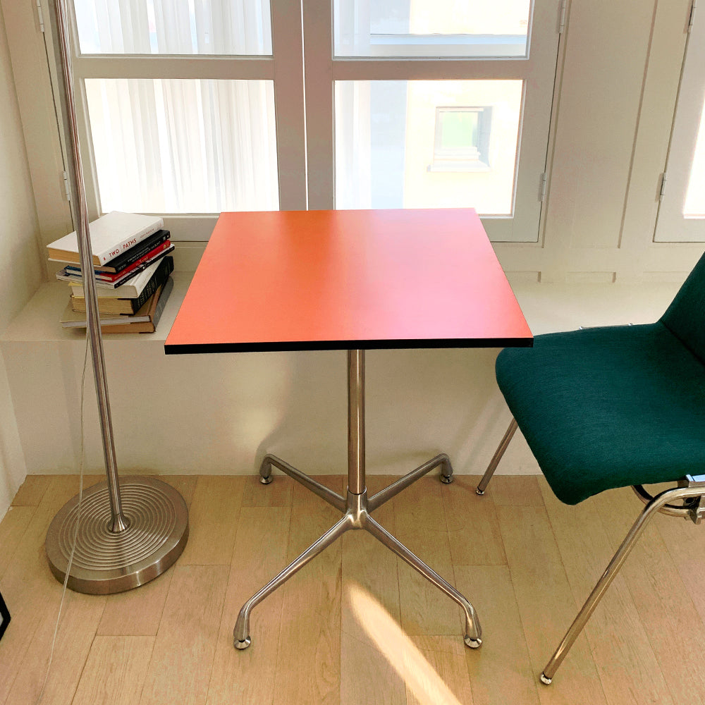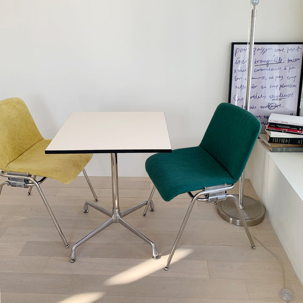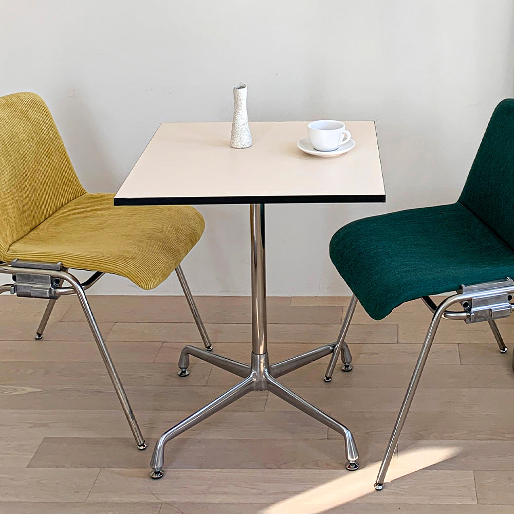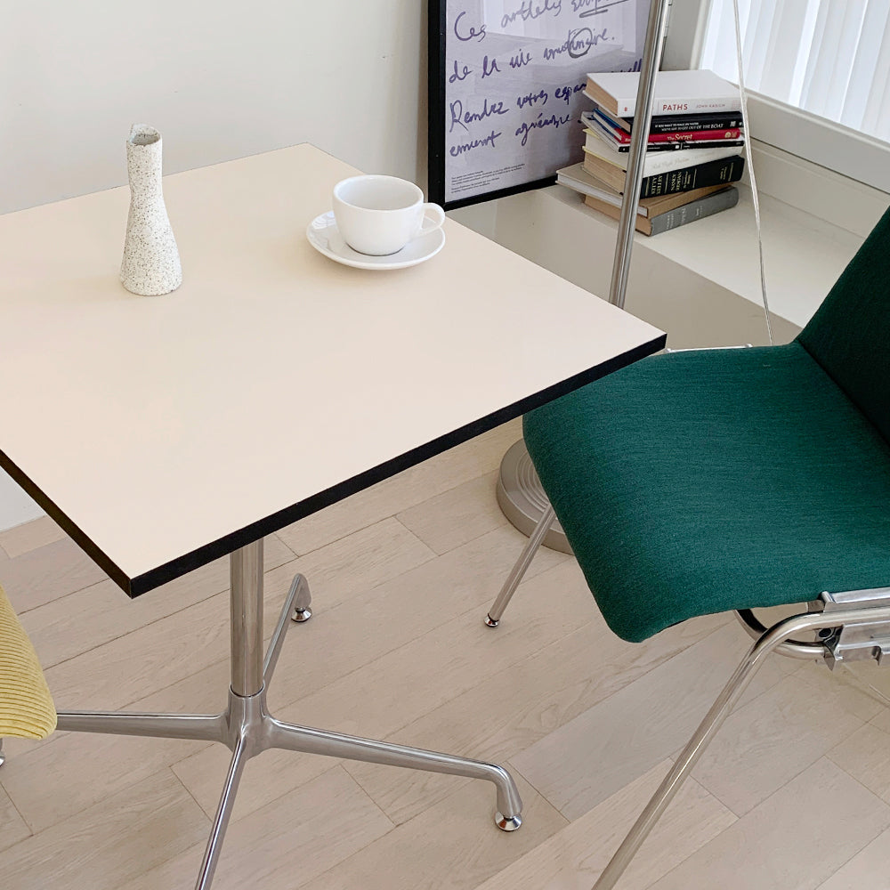 すっきりとした四角のデザインとアルミ脚のモダンな組み合わせが目立ち、どんな空間に配置しても自然なムードを演出してくれる四角テーブルです。