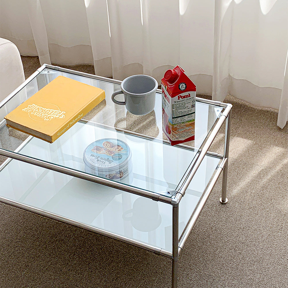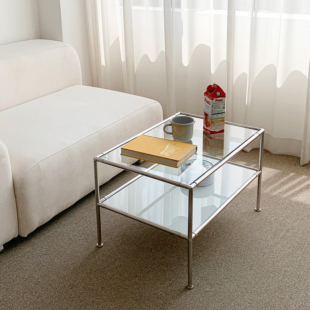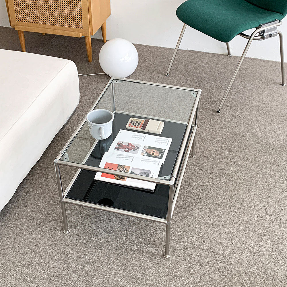 日常をより感覚的で特別にしてくれるディテール ステンレスモジュール2段ソファーテーブルは空間に置いた瞬間、 それだけで完成するモダンなインテリアで どんな空間、どんな用途でも光を放ちます。