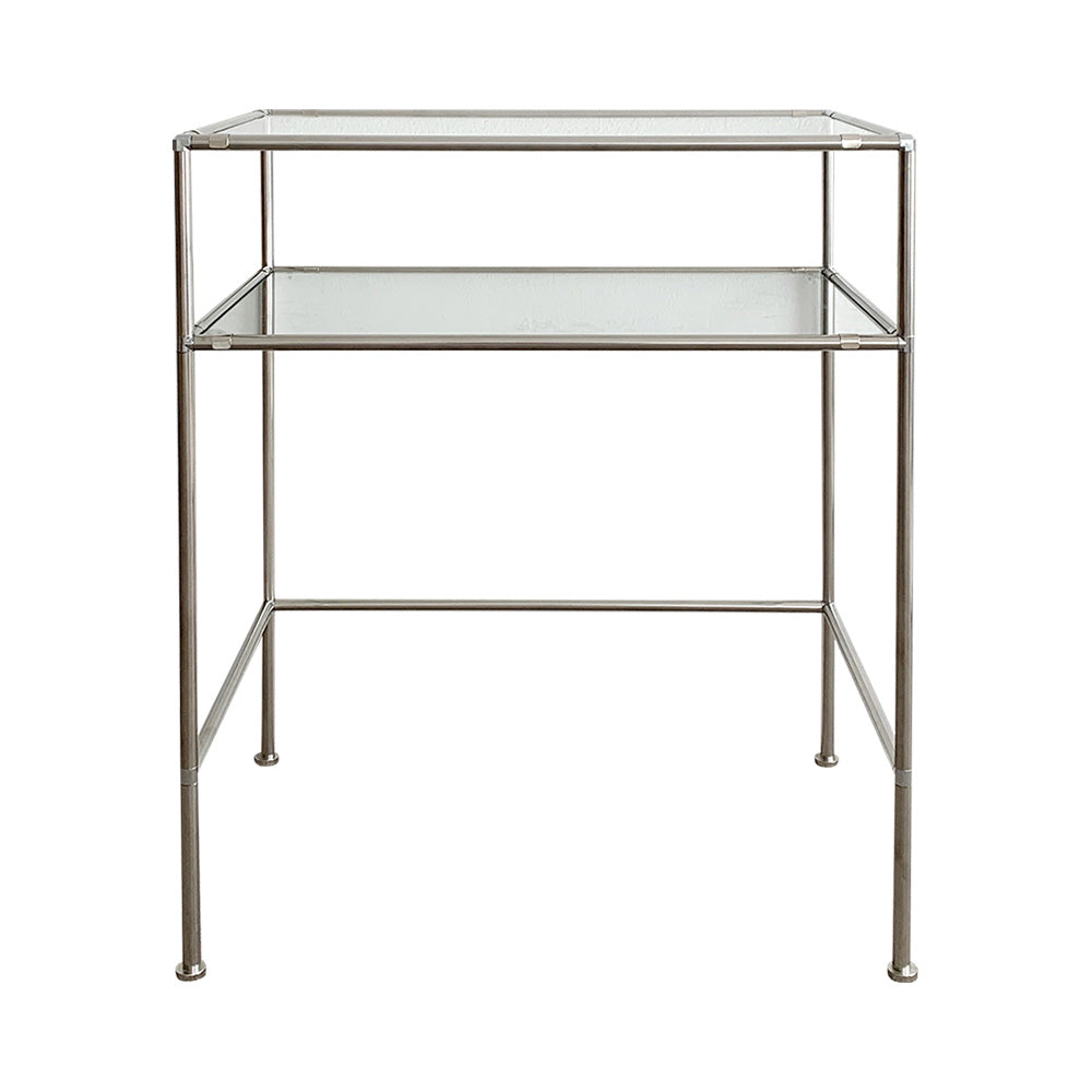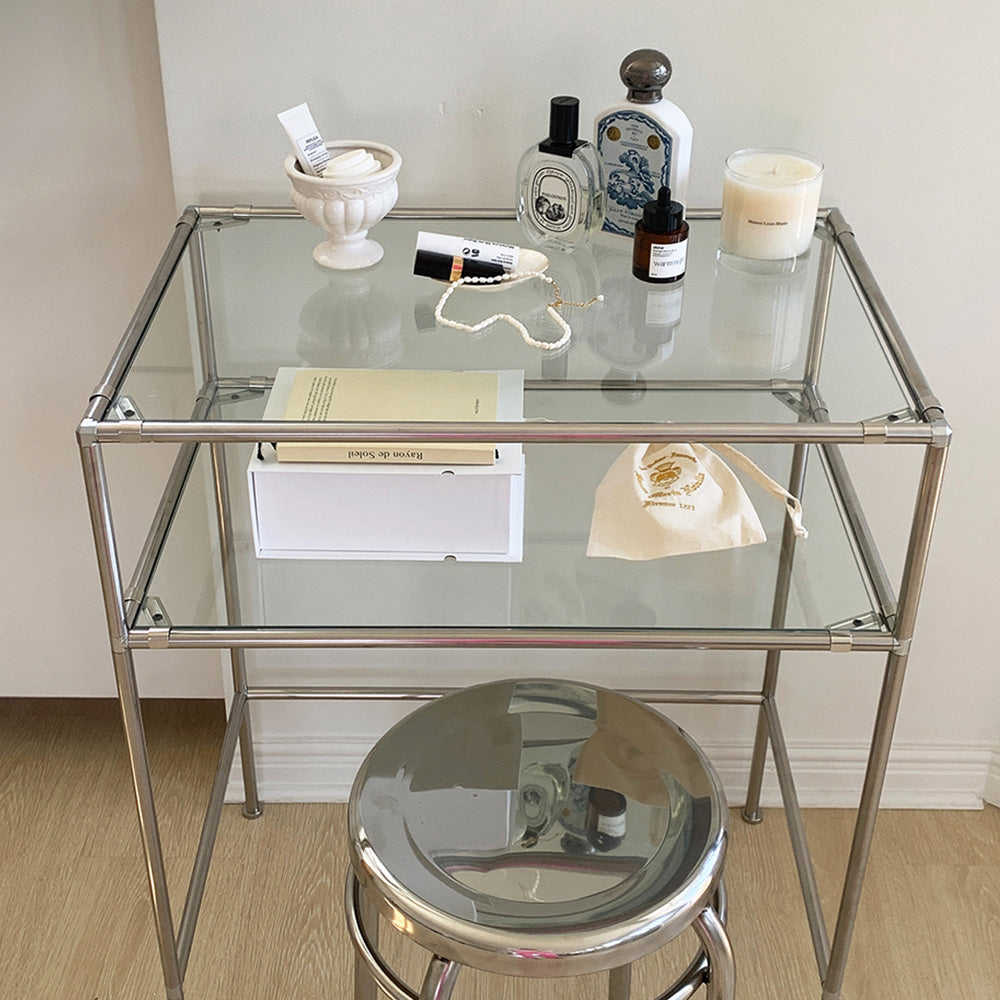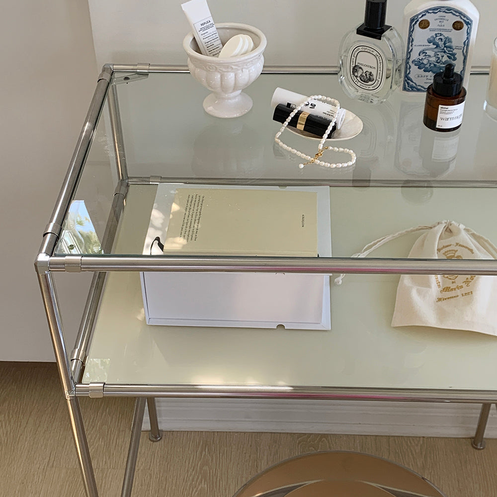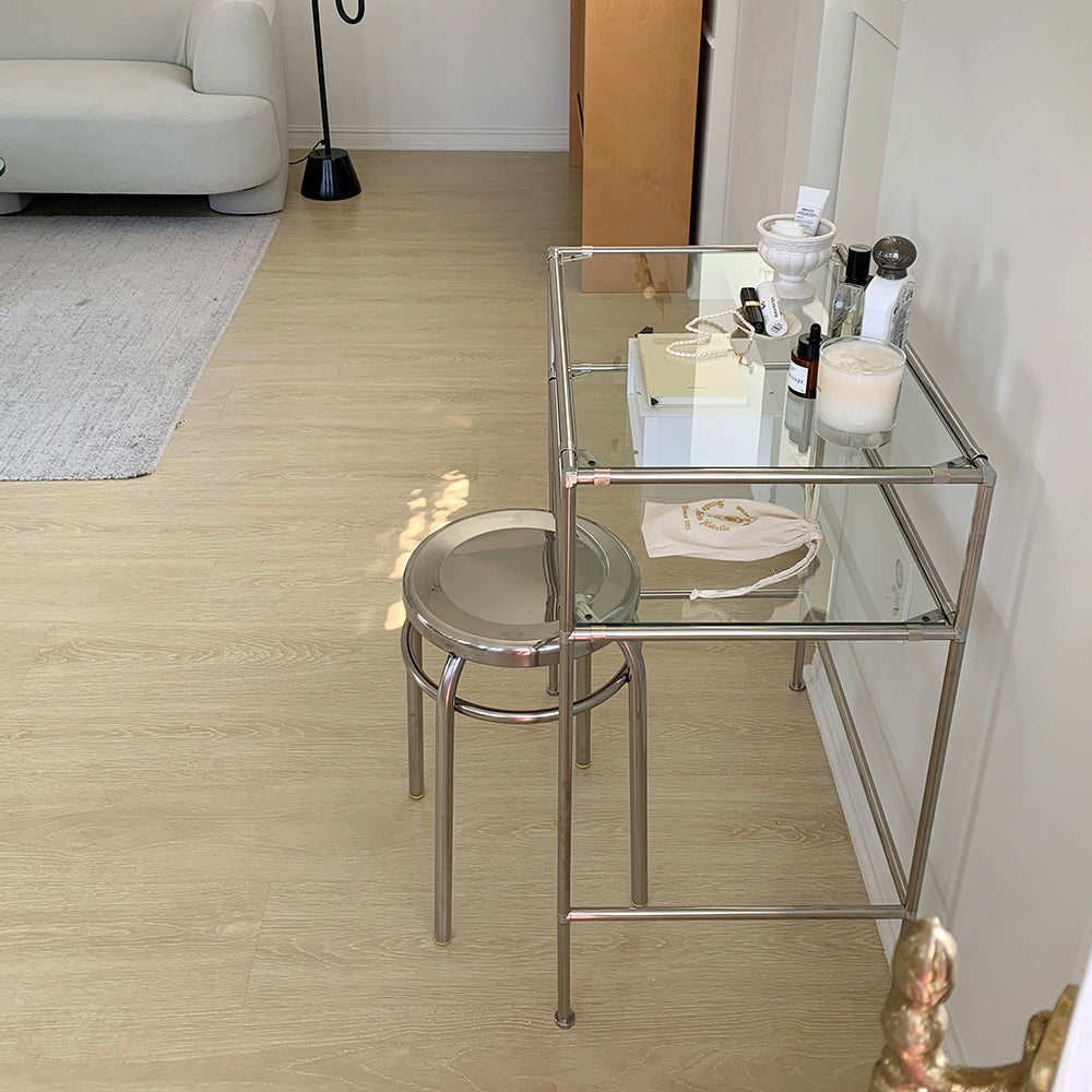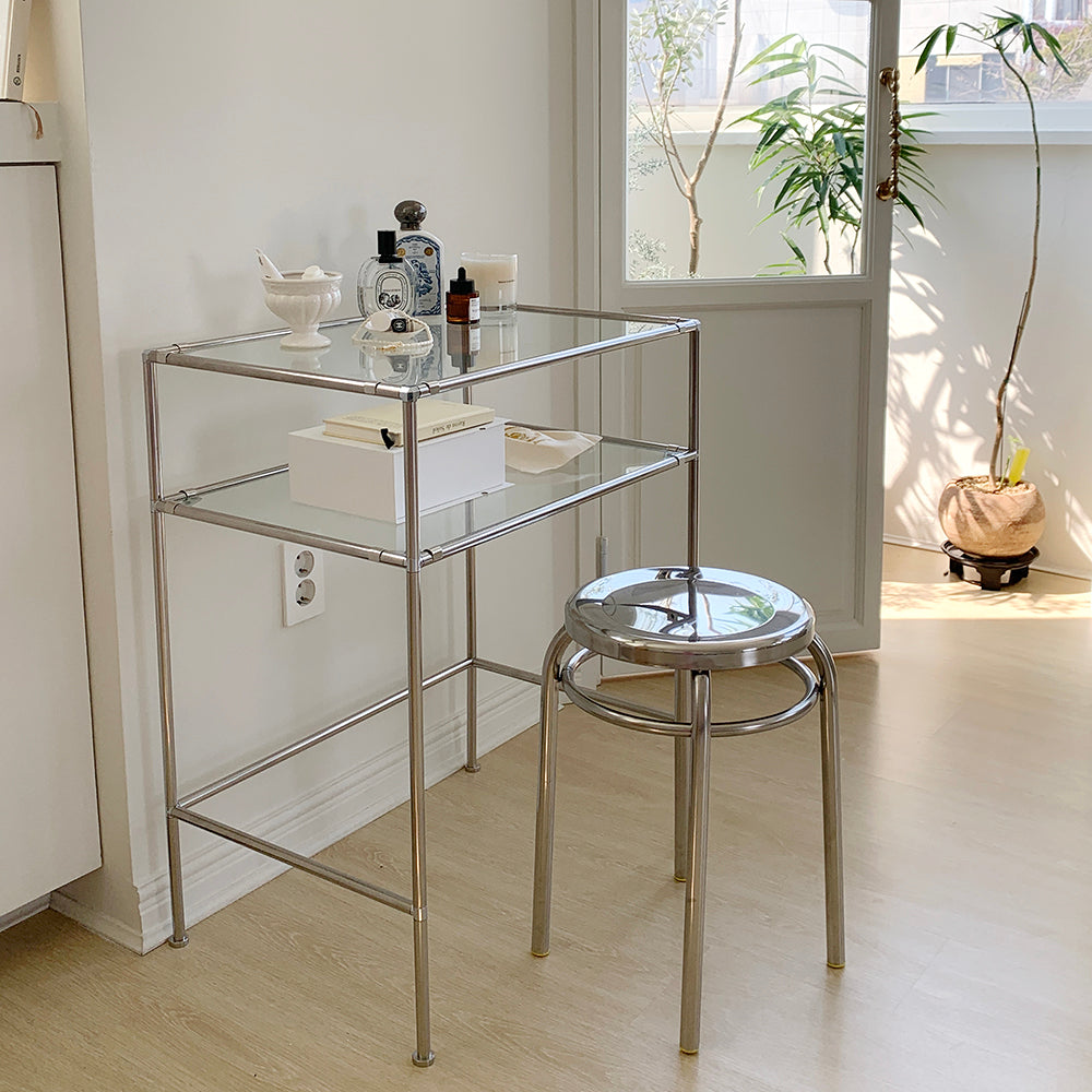 モジュール化粧台はステンレスフレームで製作された2段棚です。モダンな感覚を活かしたデザインで、化粧台、テーブルとして活用が可能で、空間をさらに華やかに飾ってくれます。