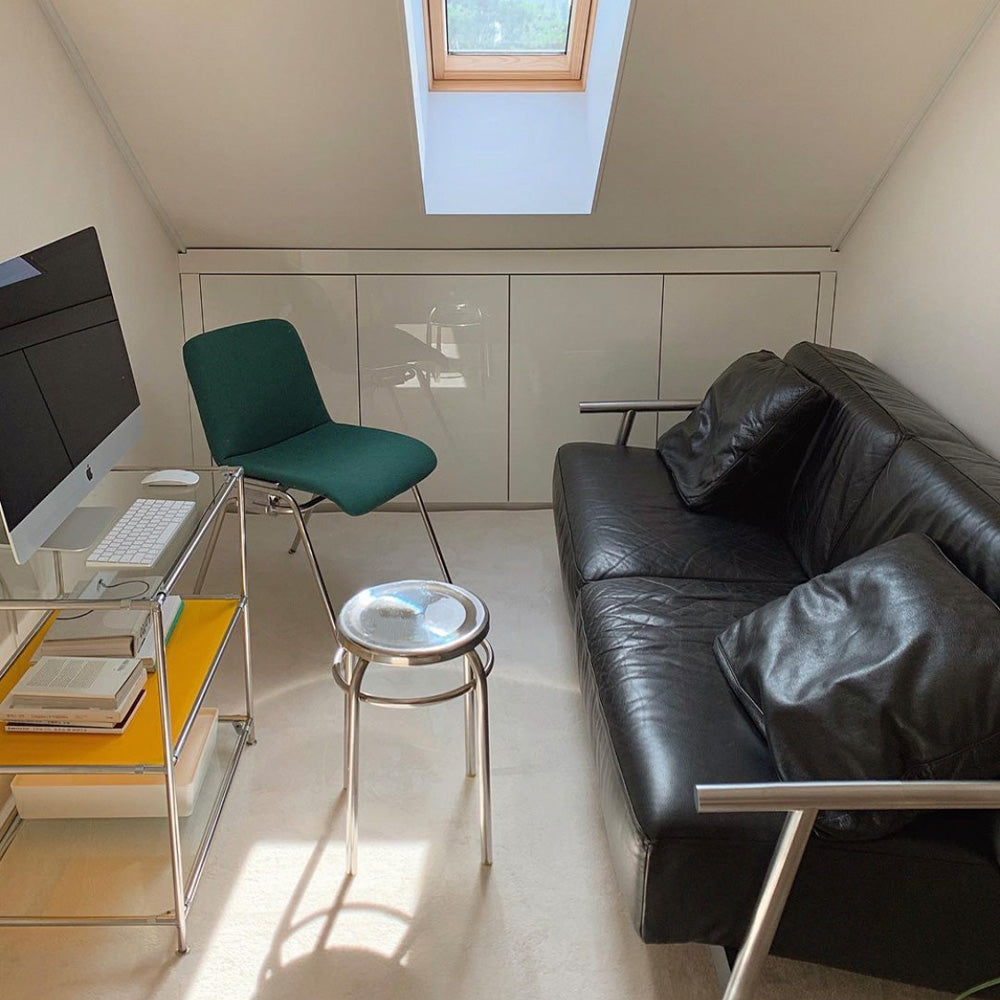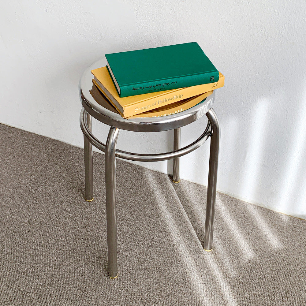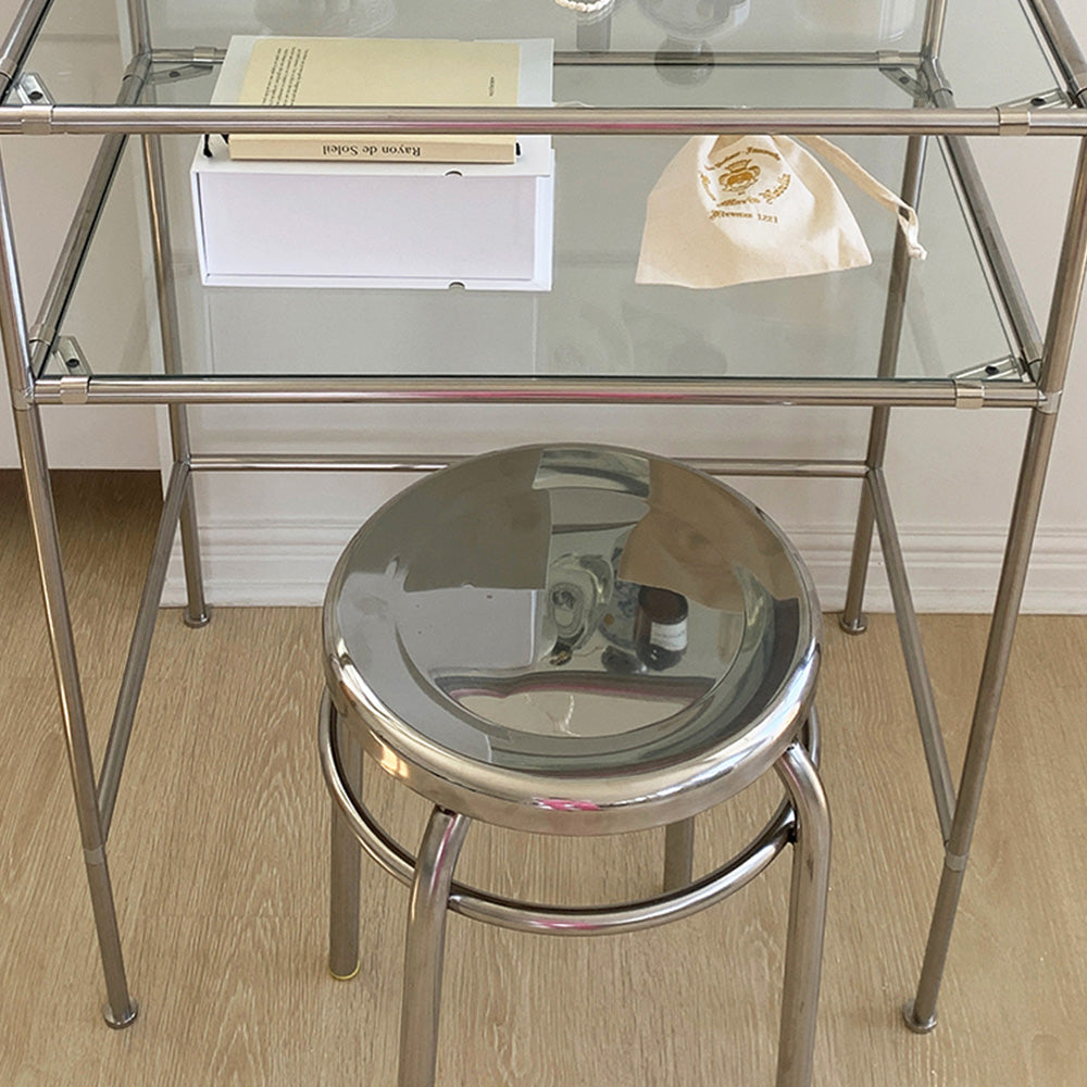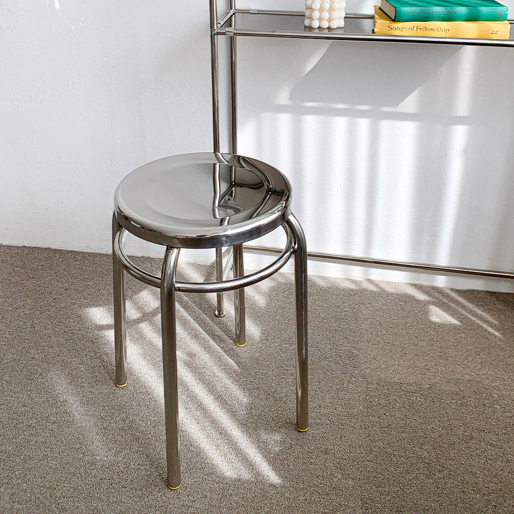 O'gre ステンレスラウンドスツールは、ドレッサーやベッド横でも活躍する、軽やかなインテリアスツールです。
