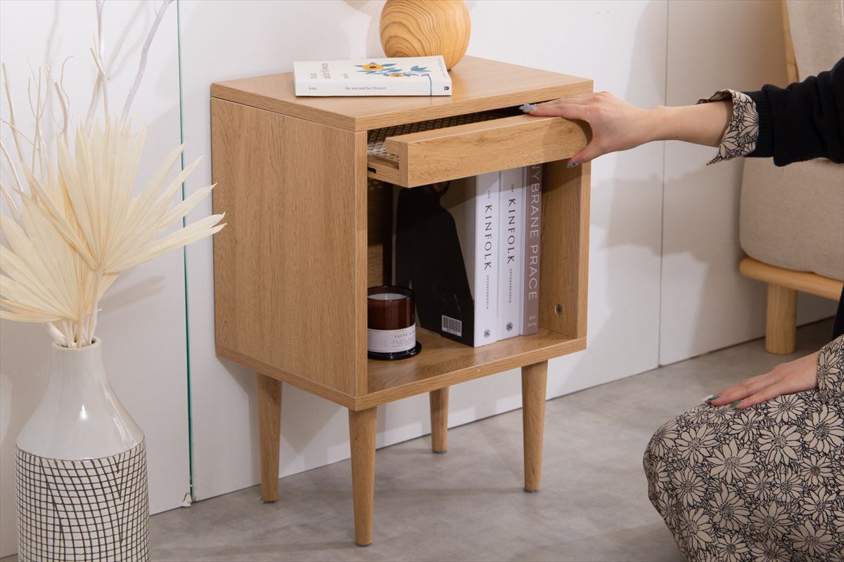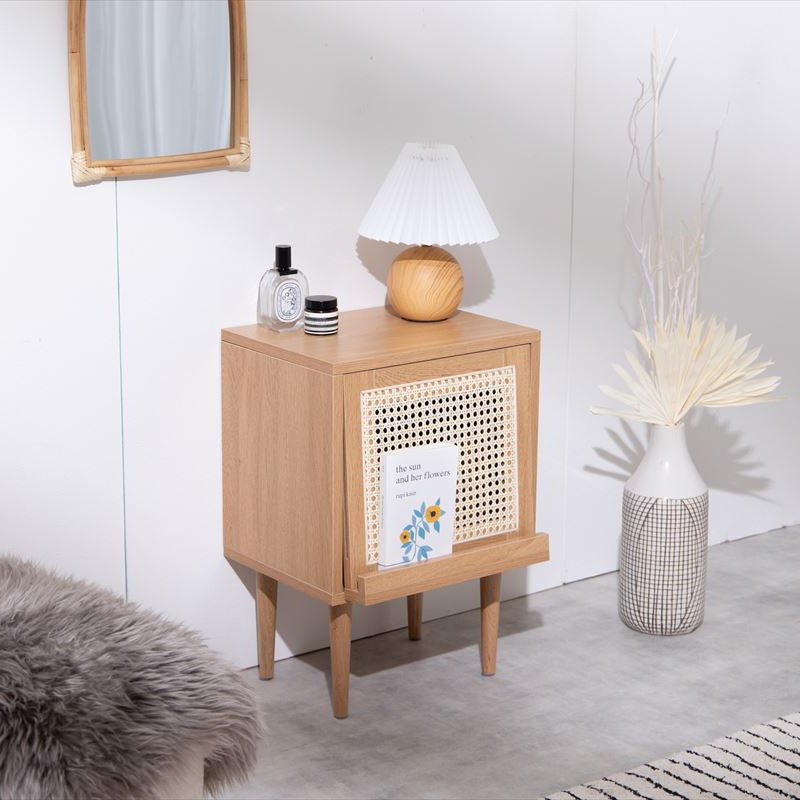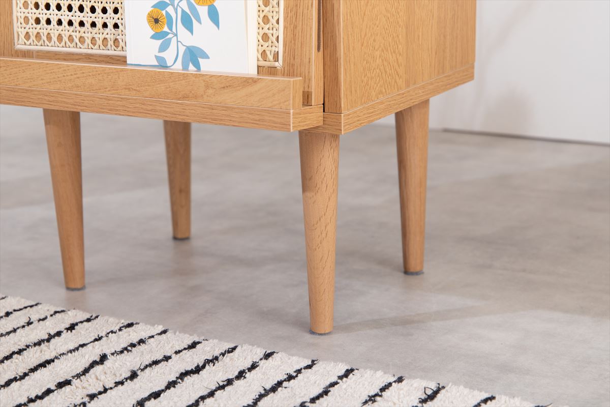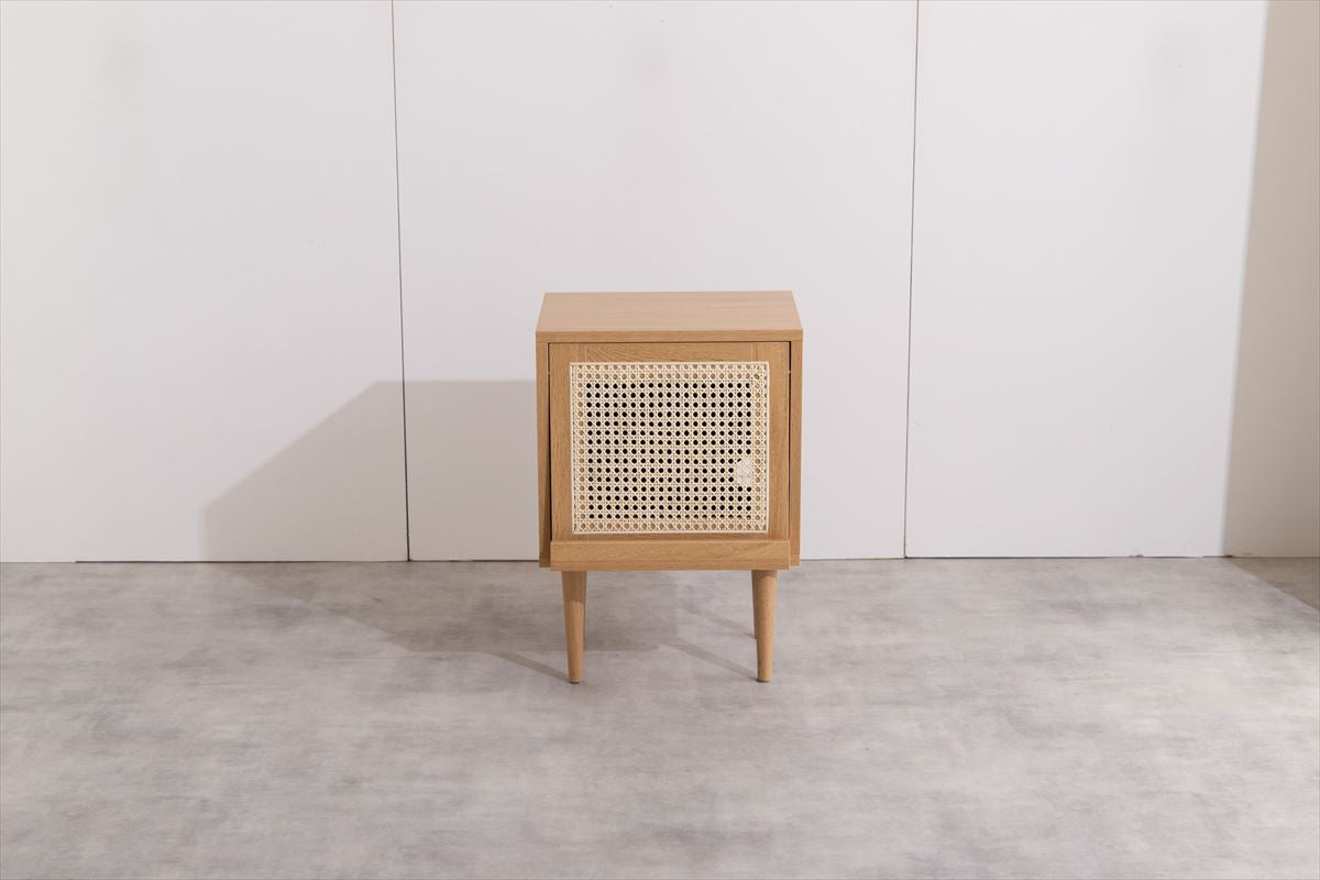 天然ラタンと美しい木目調を使用した、ナチュラルで温かみあるラタンサイドキャビネットです。ラタン部分は抜け感のカゴメ編みが爽やかに上質な雰囲気を演出しています。また、お部屋に取り入れやすいコンパクトサイズながらも、たっぷり収納可能ですっきりした空間を作ることができます。