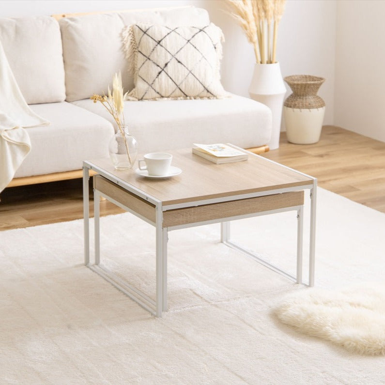 機能的で洗練された空間を作るネストテーブルです。スタイリッシュなワイヤーフレームは、置くだけで憧れのシンプルモダンなインテリア空間を実現します。また、伸縮可能なため、間取りやシーンに合わせて、必要に応じて幅調整が可能です。