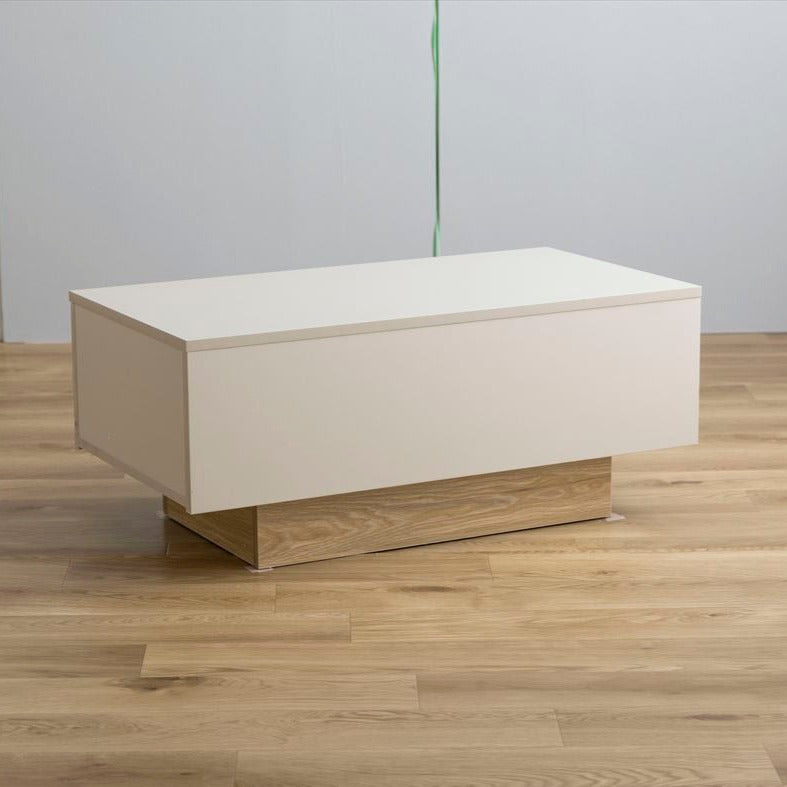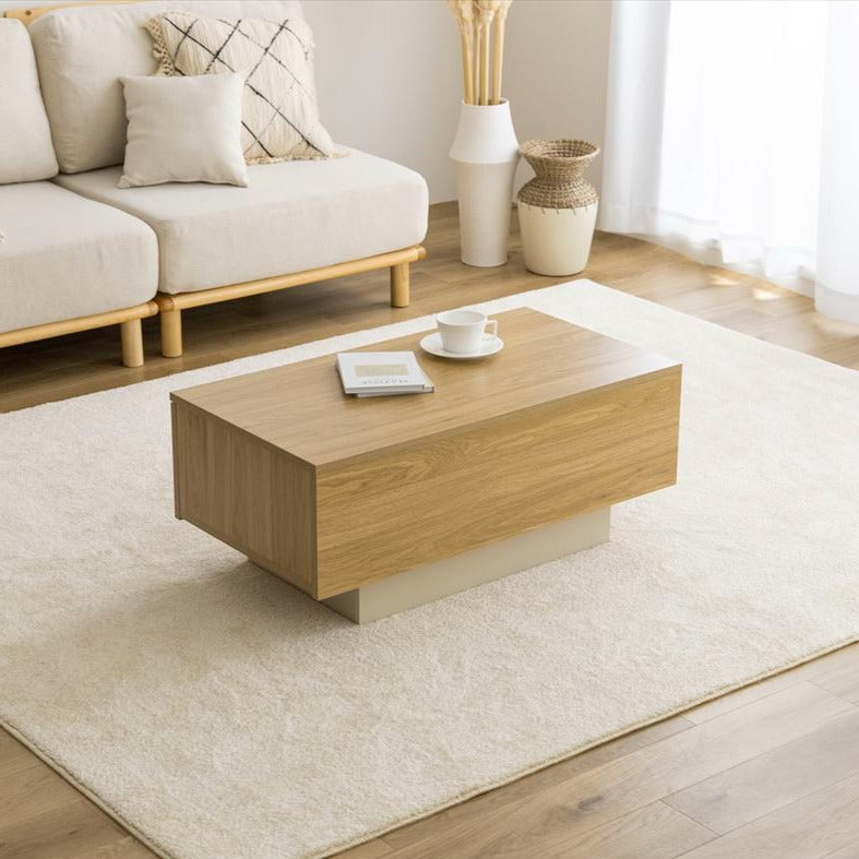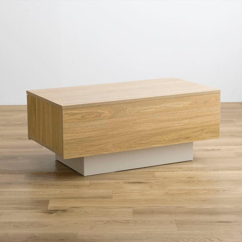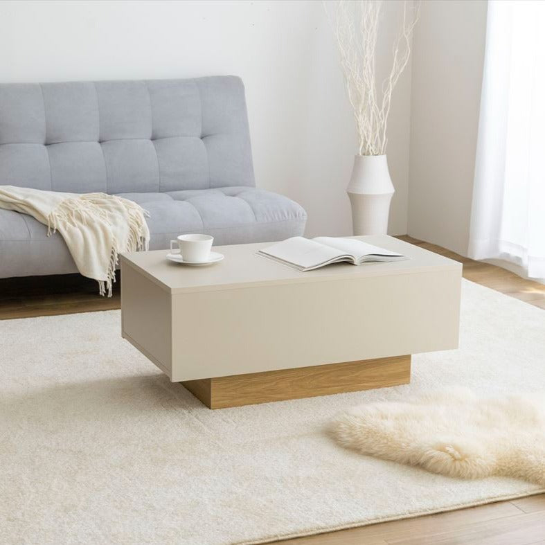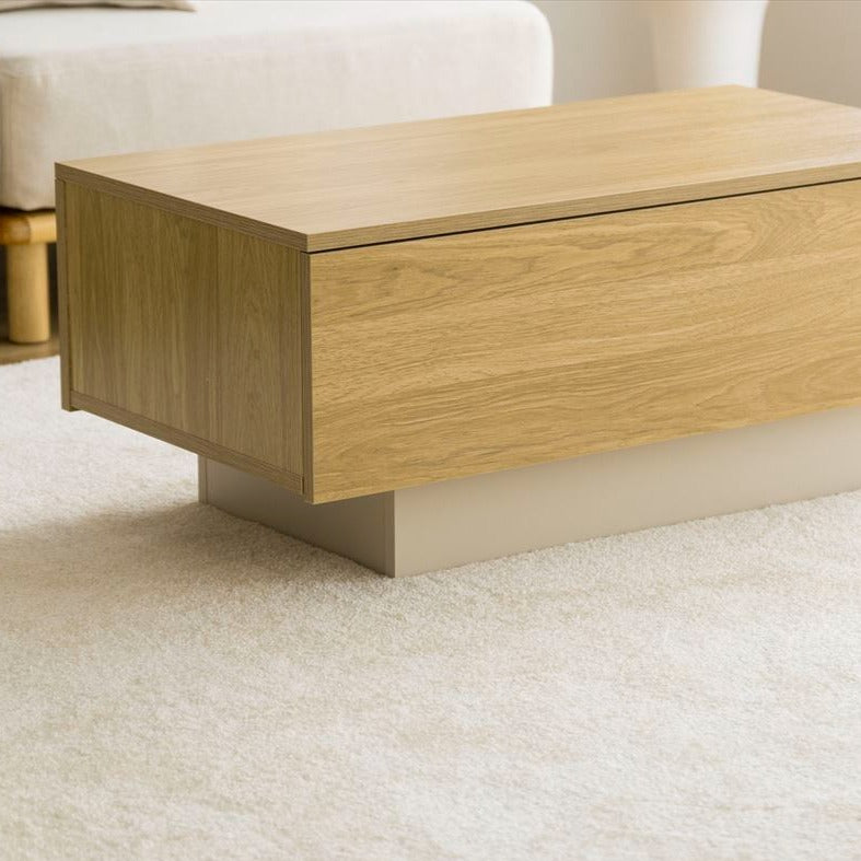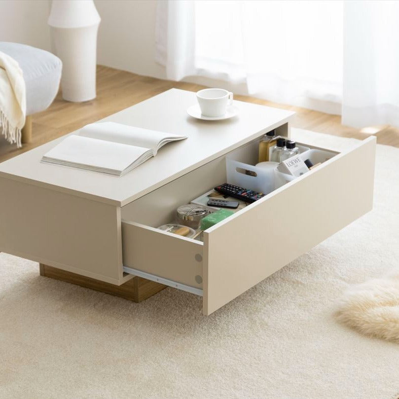 バイカラーの配色が特徴的な引き出し付きセンターテーブルです。ノイズレスでフロート脚のデザインは、置くだけでアクセントとなり、洗練された空間にします。大容量収納が可能な引き出しや隠しキャスターなど使い勝手にもこだわりました。シンプルなのにこだわりの詰まったデザインと実用性を兼ねそろえたアイテムです。