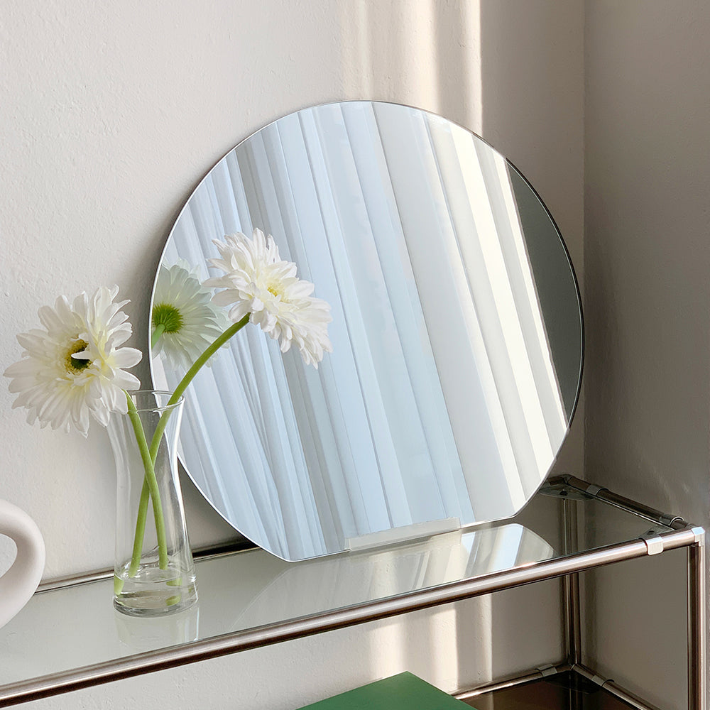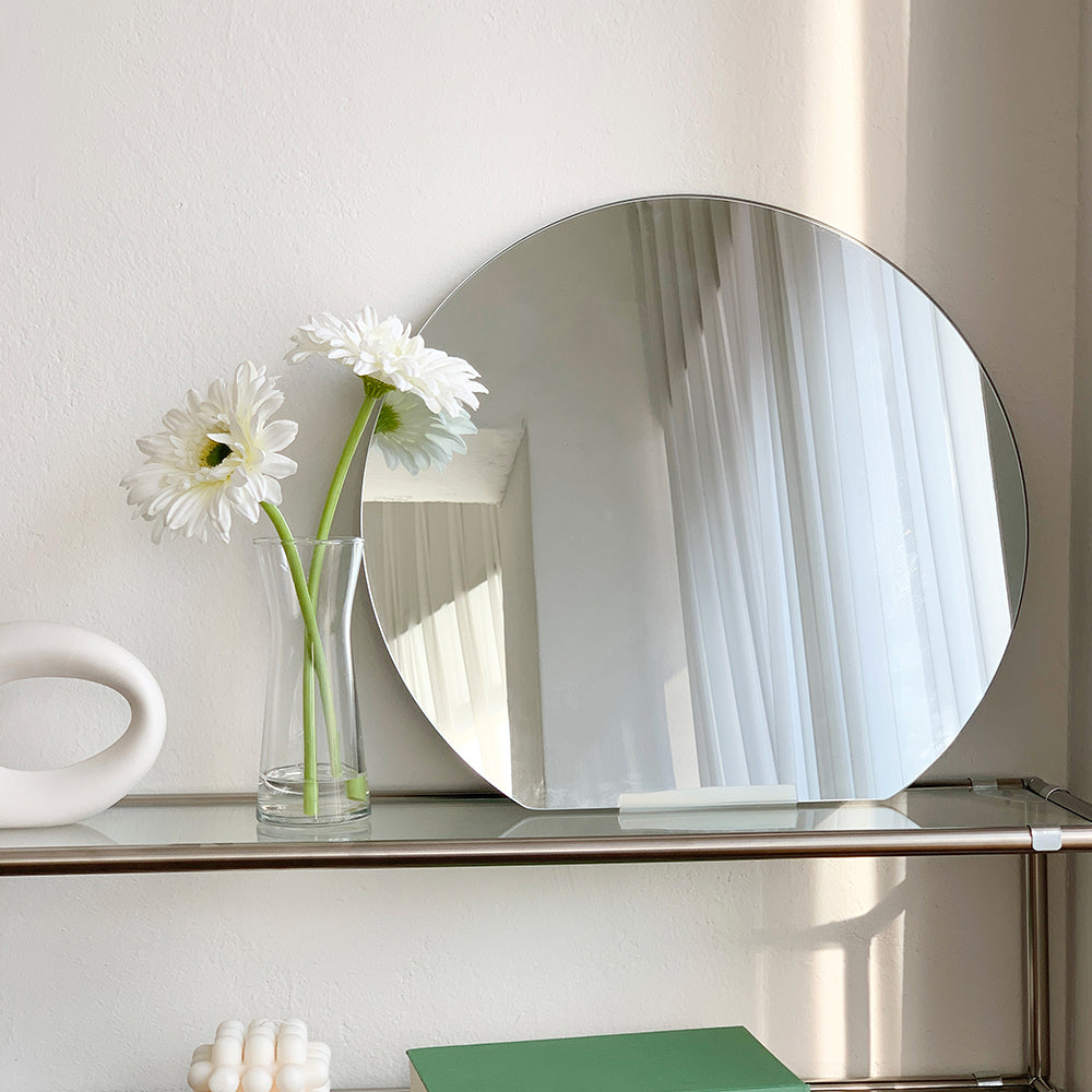 O'gre ノーフレームミラーは、洗面所やデスクまわりにも馴染む、すっきり使えるラウンドミラーです。