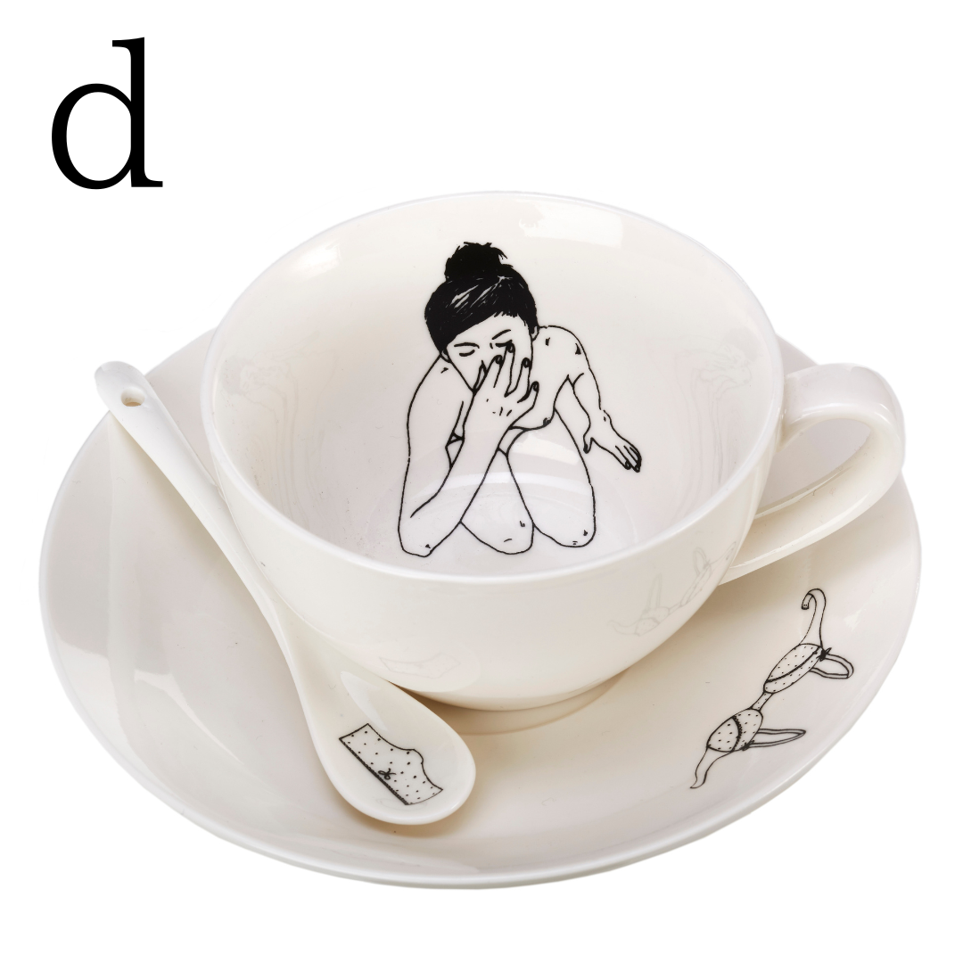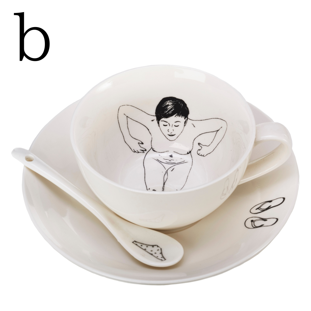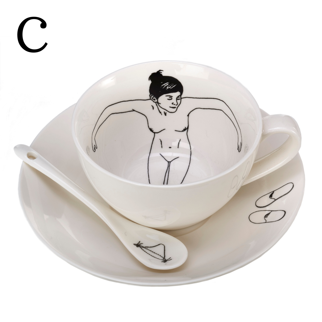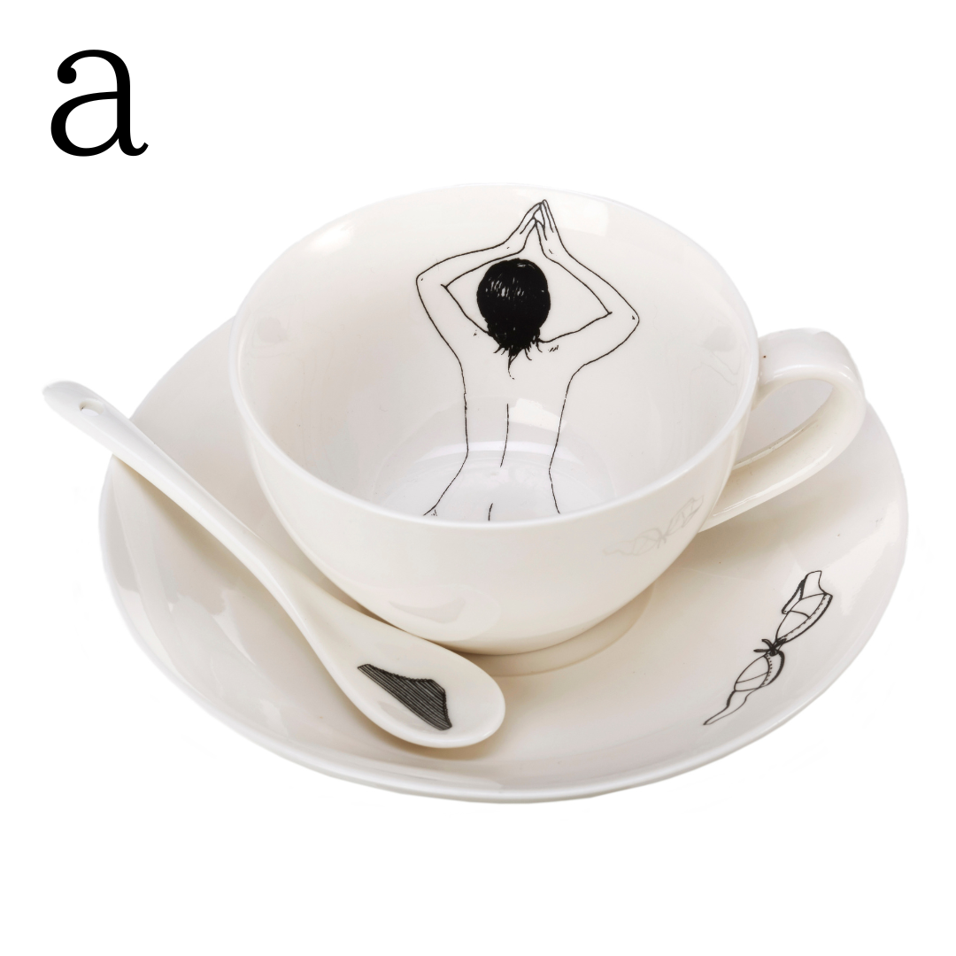 オランダのイラストレーターEsther Hörchner(Het Paradijs)がPOLSPOTTENのためにデザインしたユニークなティーカップ/ティーポット。彼女の繊細なアートワークは、ソフトペンシルとファインライナーで手描きされています。 ティーカップやティーポットの中に入浴する女性を描くことで、ちょっと風変わりでひと味違うディテールと隠れた楽しみが表現されています。あなたのティータイムはこれまでにないほど解放感で満たされることでしょう。