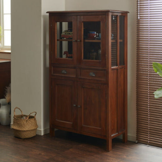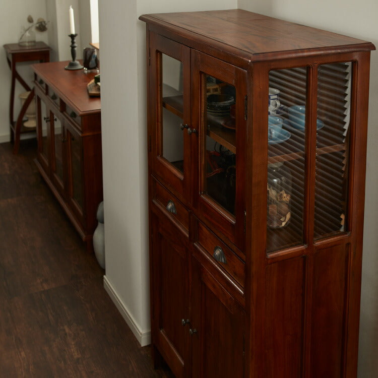 ヨーロッパとアジアの文化が融合したコロニアル様式のキャビネットです。マカボニーの無垢材を贅沢に使用したアイテムです。