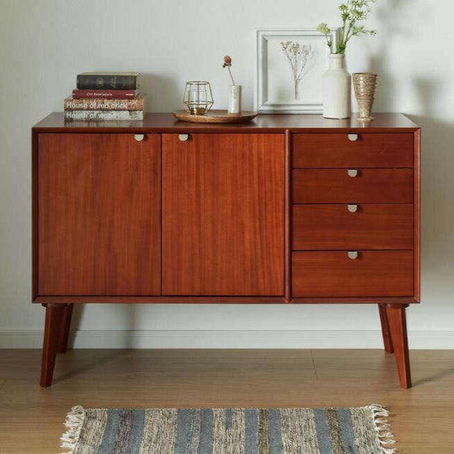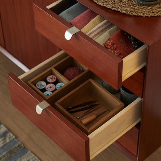 ウォールナットやチークと並び、世界三大銘木の一つマホガニーを使用したキャビネットです。味わい深く、重厚感ある質感と上品な美しさを併せ持ち、古くから高級木材として各国の上流階級に愛されてきました。